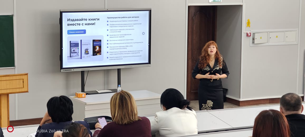 Аграрлық факультеттің ғалымдары Қазақстандағы «EDP Hub» баспасының өңірлік даму жөніндегі жетекшісі Гүлжауар Бикжановамен кездесті. Кездесу барысында спикер серіктестіктің қызметі туралы айтып, ғалымдарға Е-UNI қазақстандық мамандандырылған білім беру платформасында, сондай-ақ серіктес баспалардың платформаларында орналастыра отырып, өз жұмыстарын басып шығаруды немесе қайта басып шығаруды ұсынды.