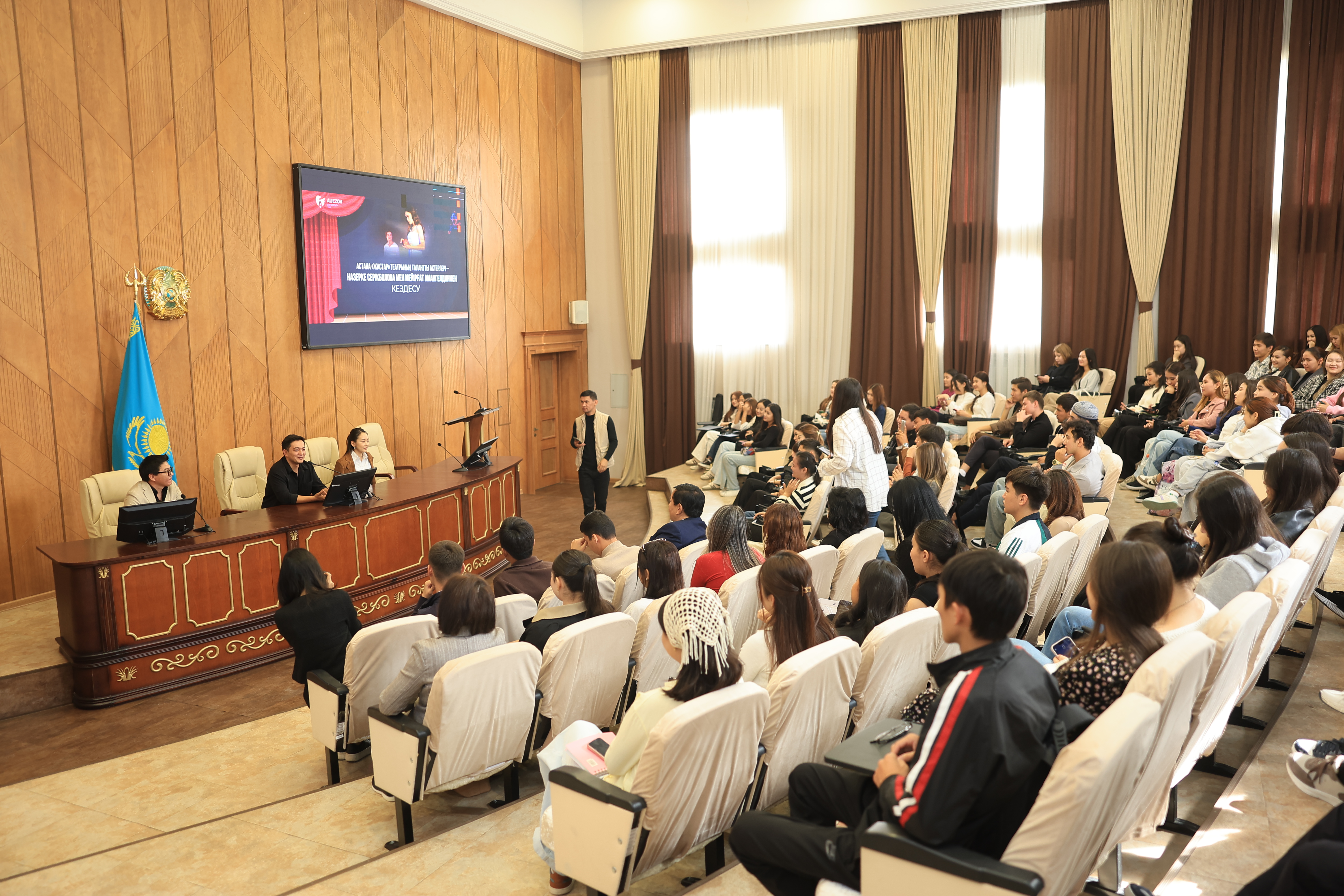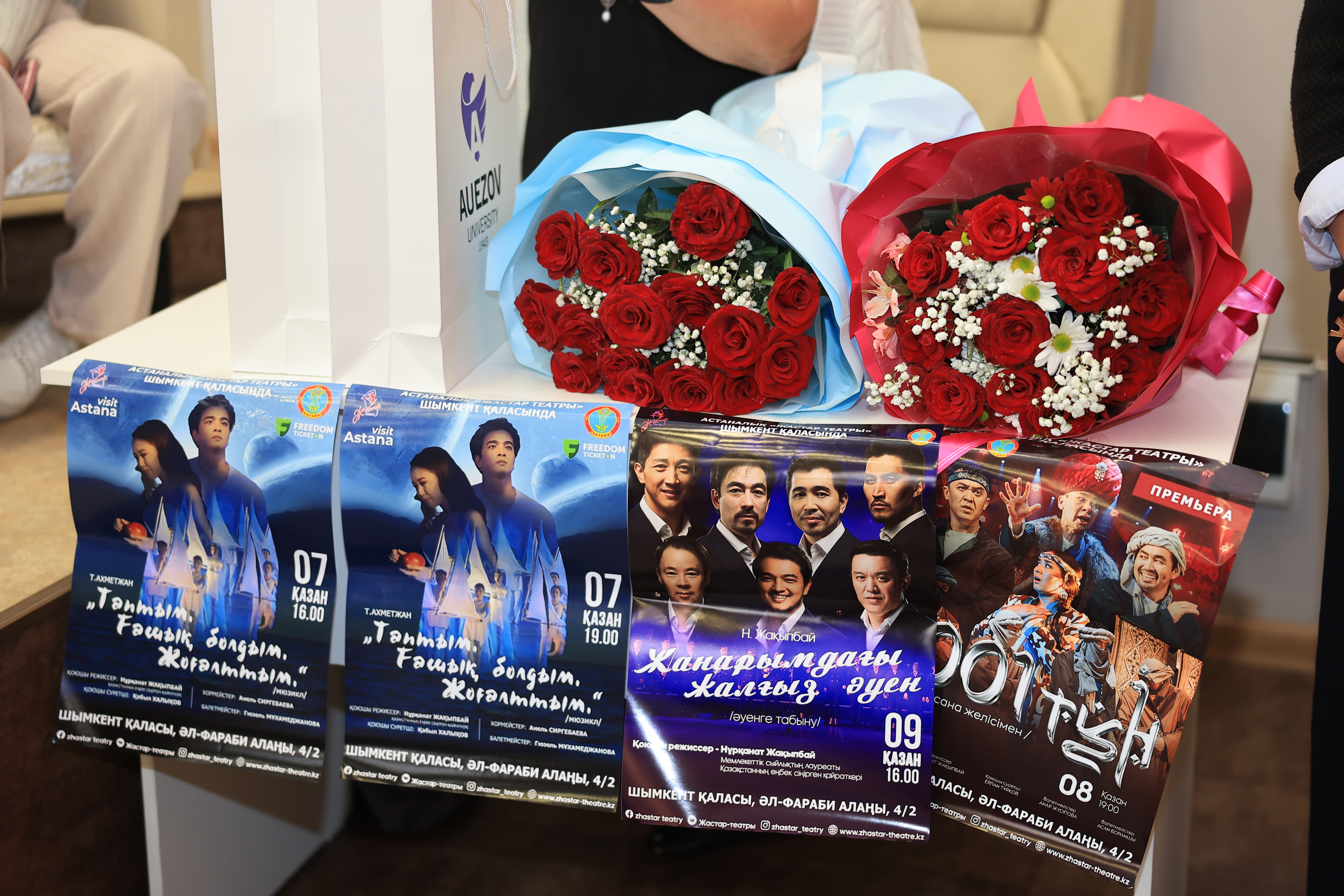 Two talented actors from the “Zhastar” Theatre in the capital, Nazerke Serikbolova and Meirgat Amangeldin, paid a special visit to M. Auezov South Kazakhstan University.