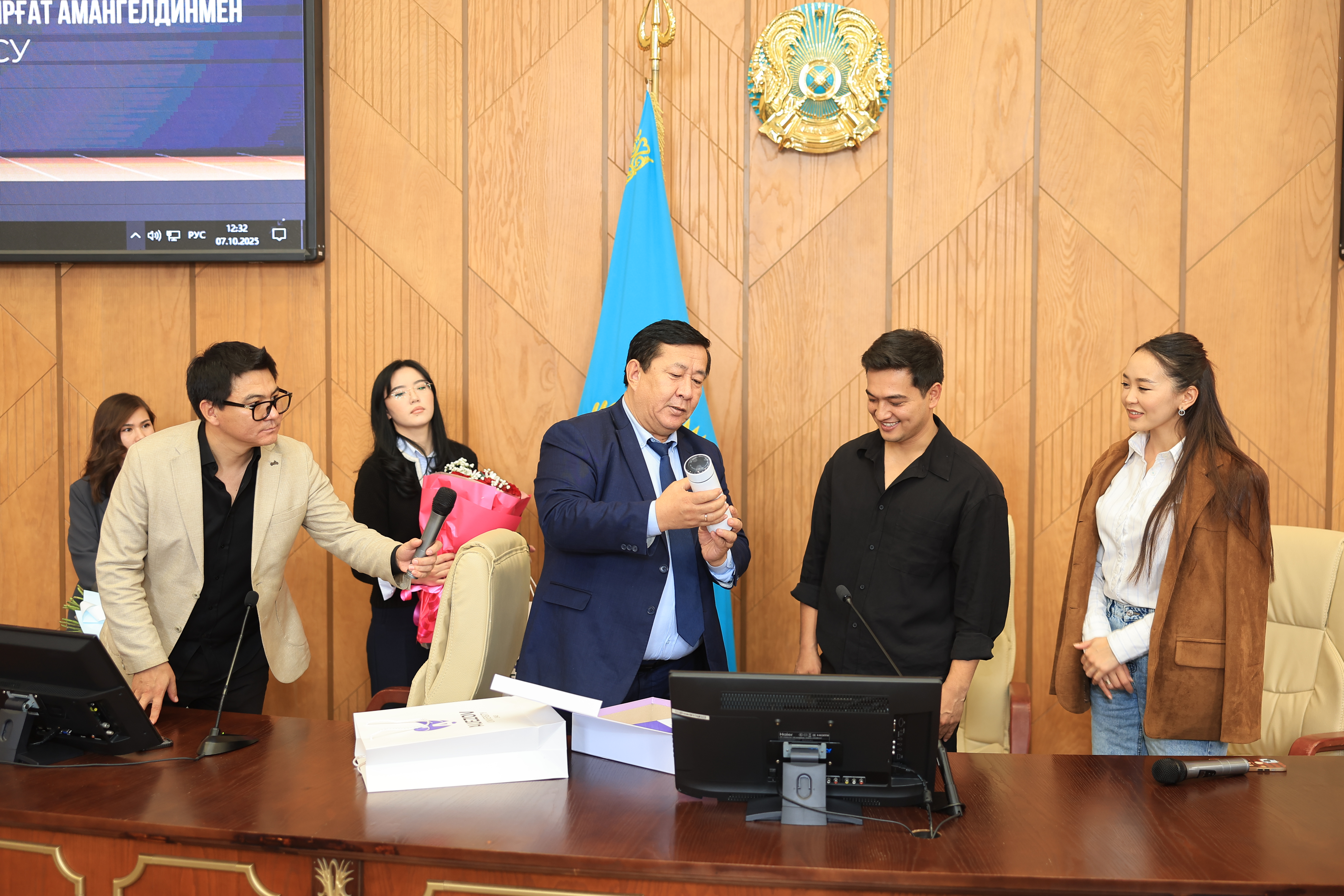 At the end of the meeting, the Vice-Rector for Public Relations and Culture, Sadybek Kalmakhanuly, thanked the guests on behalf of the university and presented them with commemorative gifts.