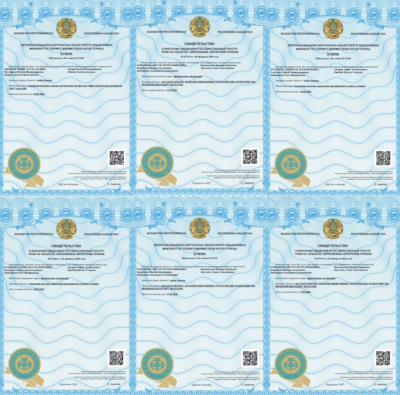 It should be noted that these certificates are obtained annually by faculty members in co-authorship with students. This format of collaboration contributes to the development of students’ research culture, the formation of research competencies, and their involvement in real scientific projects.