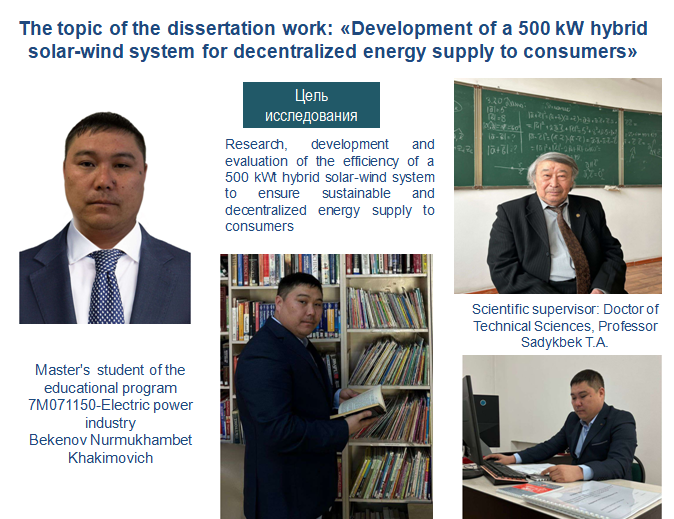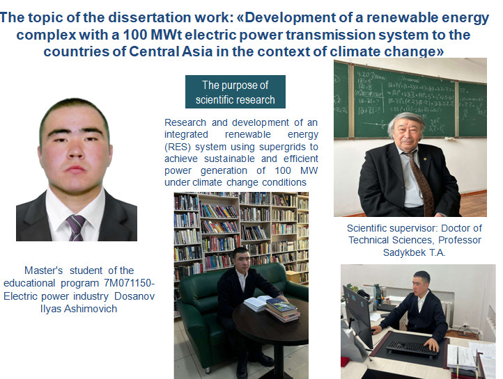 He is also a scientific consultant to a number of undergraduates and doctoral students of the departments: "Ecology", "Economics" and "Electric Power Industry and non-traditional energy systems". For example, at the suggestion of Professor RaeKwon Chung ta at the Department of "Energy and Non-traditional Energy Systems", undergraduate student Dosanov Ilyas Ashimovich was given the topic of a master's thesis on "Research and development of an integrated renewable energy (RES) system using supergrids to achieve sustainable and efficient power generation of 100 MW under climate change conditions." |