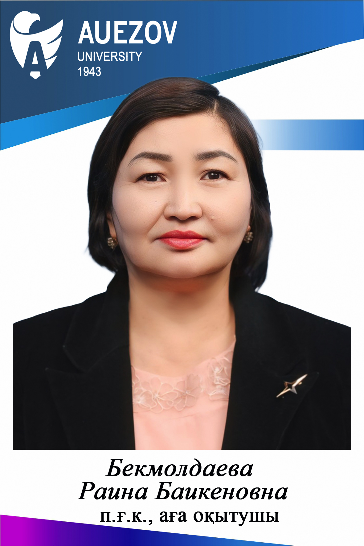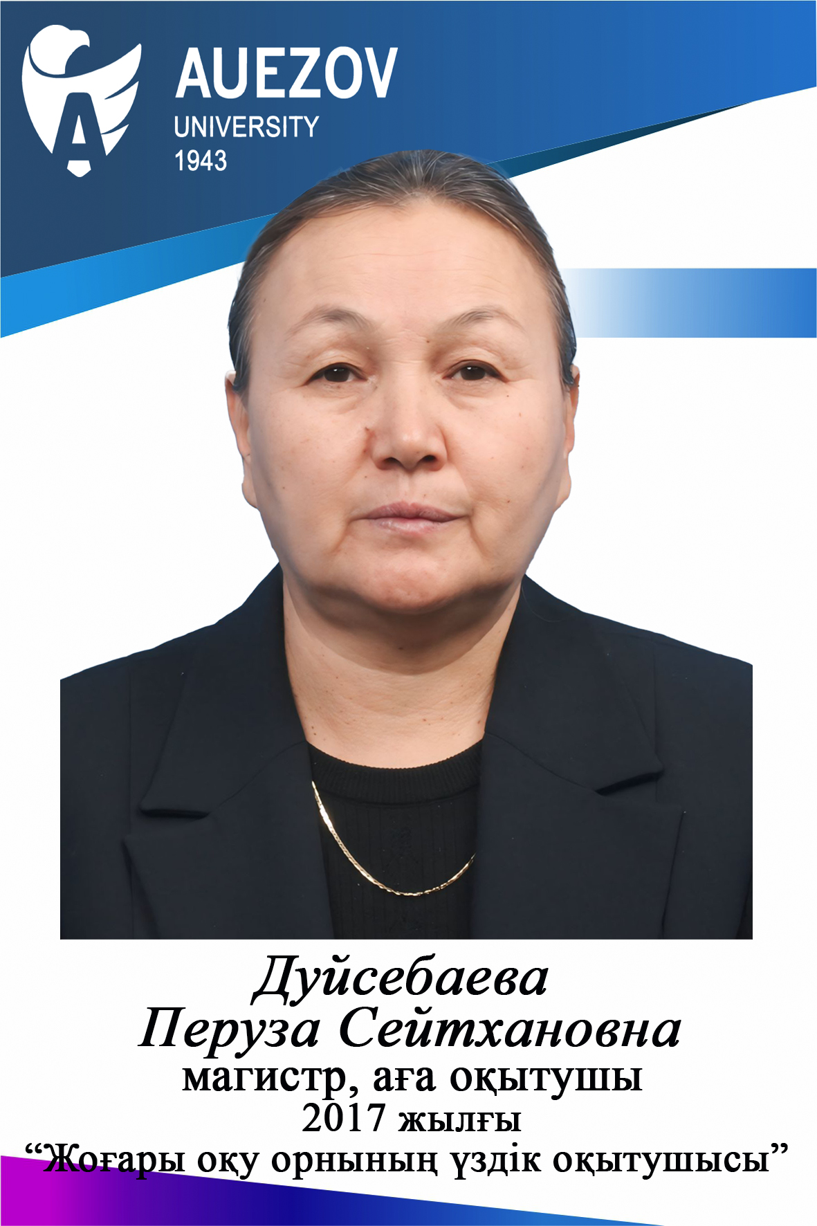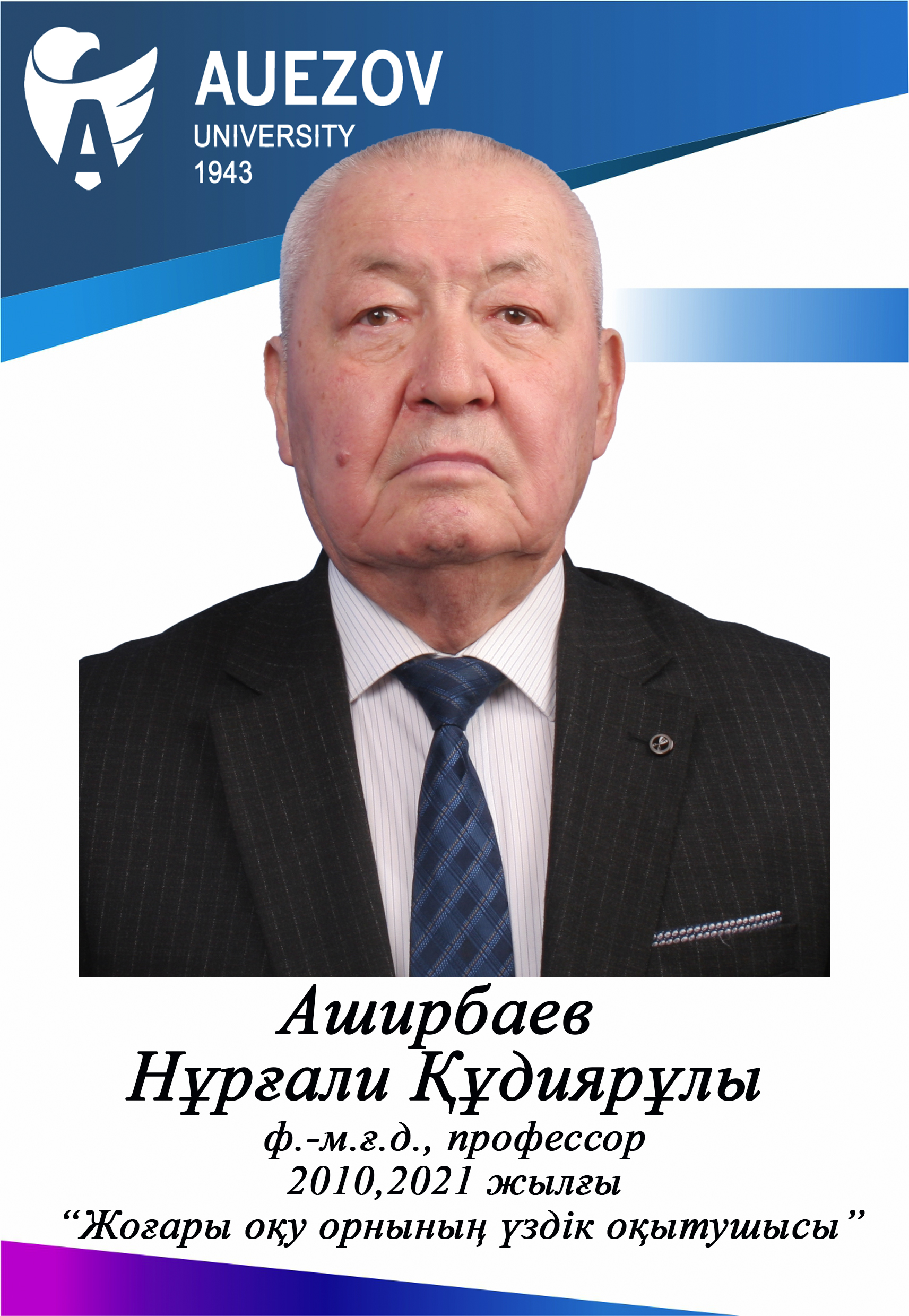 - Аширбаев Н.К. ҚР Білім және Ғылым министрлігінің 2021 жылғы «Жоғары оқу орнының үздік оқытушысы» атағының иегері болып табылады. Нұр-Сұлтан, 2022ж.