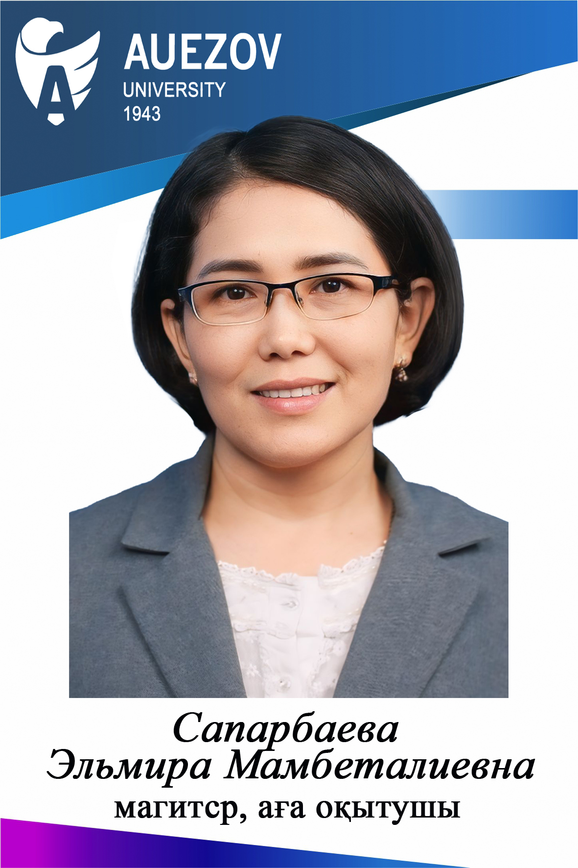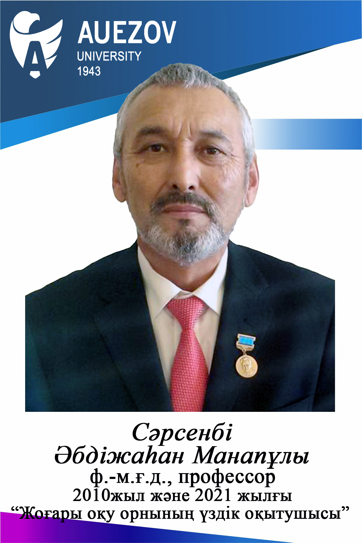 - Сәрсенбі Ә.М. ҚР Білім және Ғылым министрлігінің 2021 жылғы «Жоғары оқу орнының үздік оқытушысы» атағының иегері болып табылады. Нұр-Сұлтан, 2022ж.