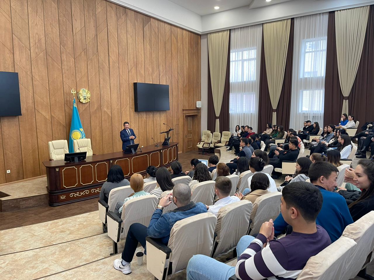 Кездесу барысында студенттер белсенді түрде сұрақтар қойып, жұмысқа орналасу перспективаларын, тәжірибеден өту мүмкіндіктерін және мансаптық өсу жолдарын талқылады.