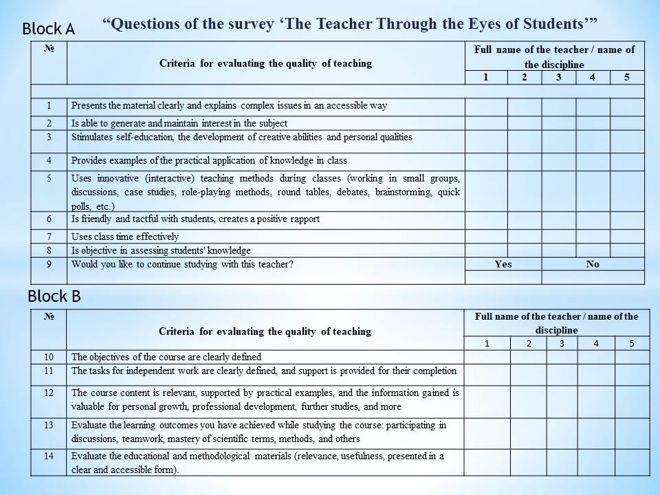 The Department of Sociological Research conducted a survey from February 22 to March 15, 2023, titled “Teacher Through the Eyes of Students.” A total of 11,943 students participated in the survey, evaluating 1,352 teachers, which accounts for 80.1% of the University’s total faculty.