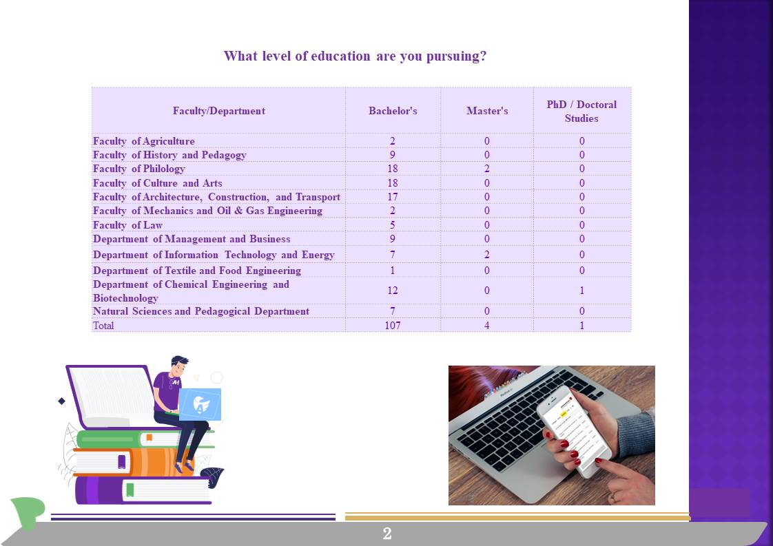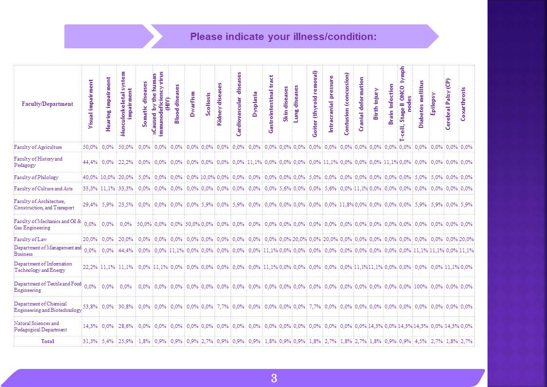 The survey was conducted to assess the level of openness and accessibility of information, the comfort of conditions, and the availability of services for persons with disabilities at M. Auezov South Kazakhstan University (SKU).