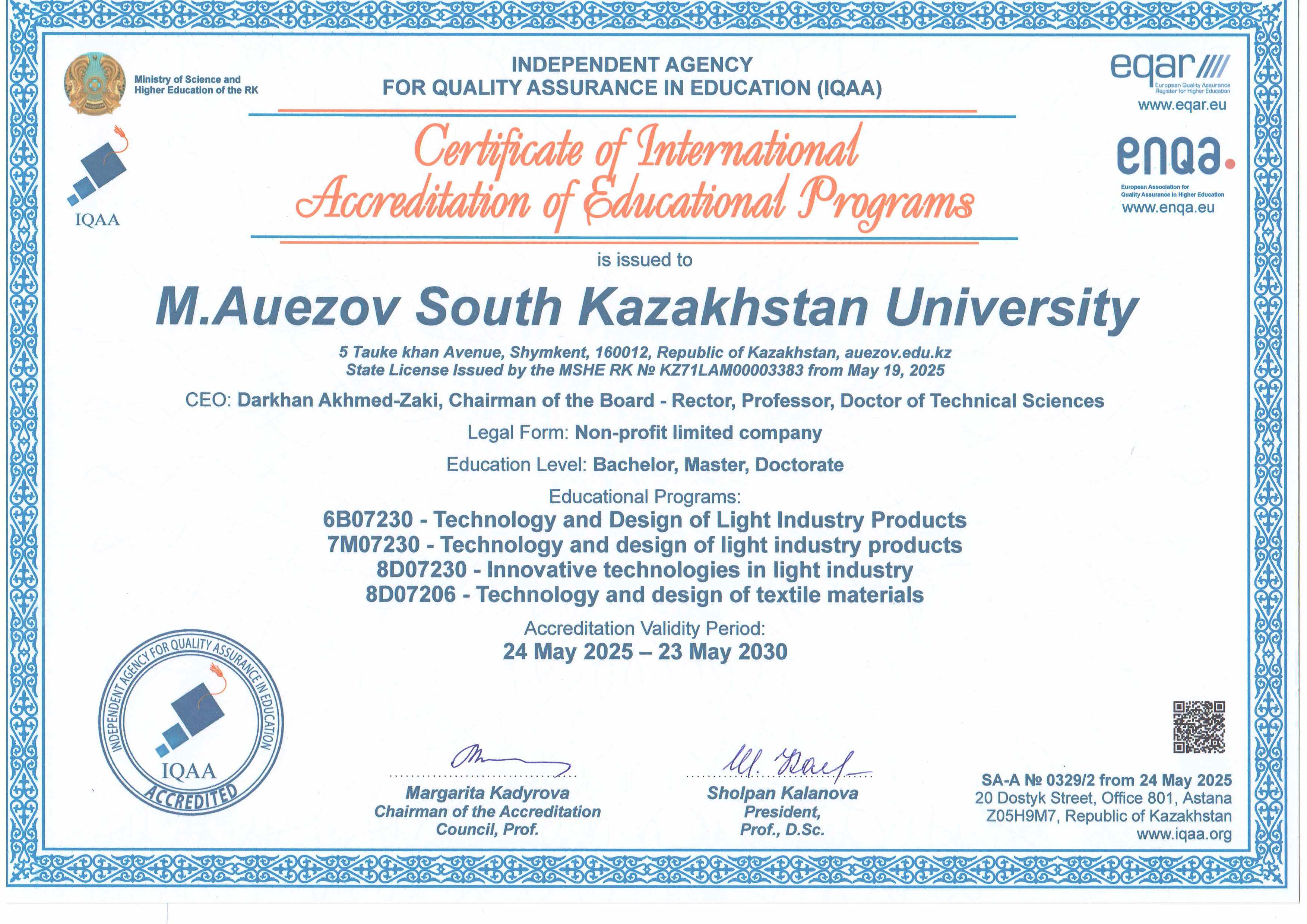 To undergo a scientific internship in "LiderSnab" LLP, "Talapty" LLP, "Gauhar" LLP, "Tomiris" LLP, "AzalaTextile" LLP, "South Textiline KZ" LLP, "Alatex" LLP.