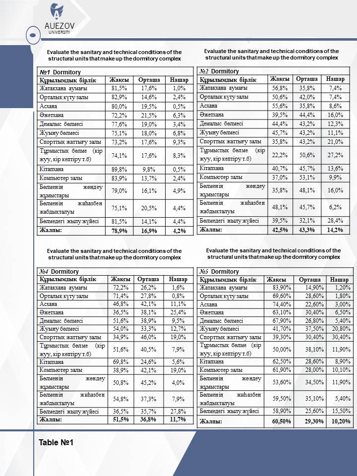 Student Satisfaction with Dormitory Living Conditions at M. Auezov South Kazakhstan University for the 2021–2022 Academic Year
