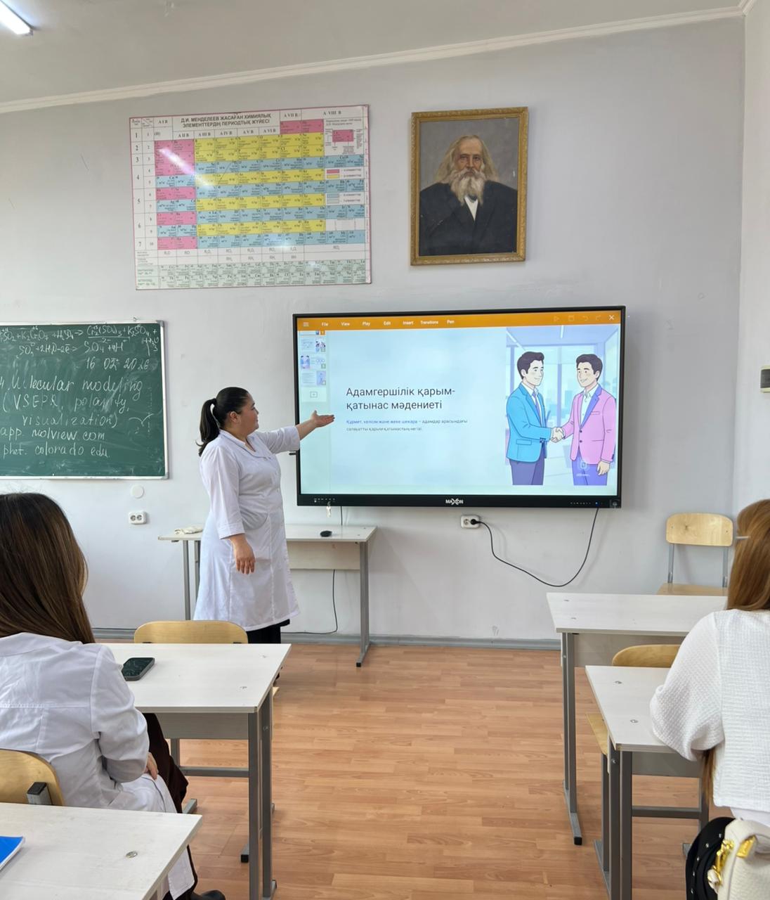 Сөз соңында куратор тәрбие сағатының мақсаты – студенттердің қарым-қатынас мәдениетін қалыптастыру, өзара құрмет қағидаларын нығайту және жеке шекараның маңыздылығын түсіндіру екенін атап өтті. Студенттерді белсенді пікір алмасуға, өзара түсіністік пен сыйластықты дамытуға шақырды.