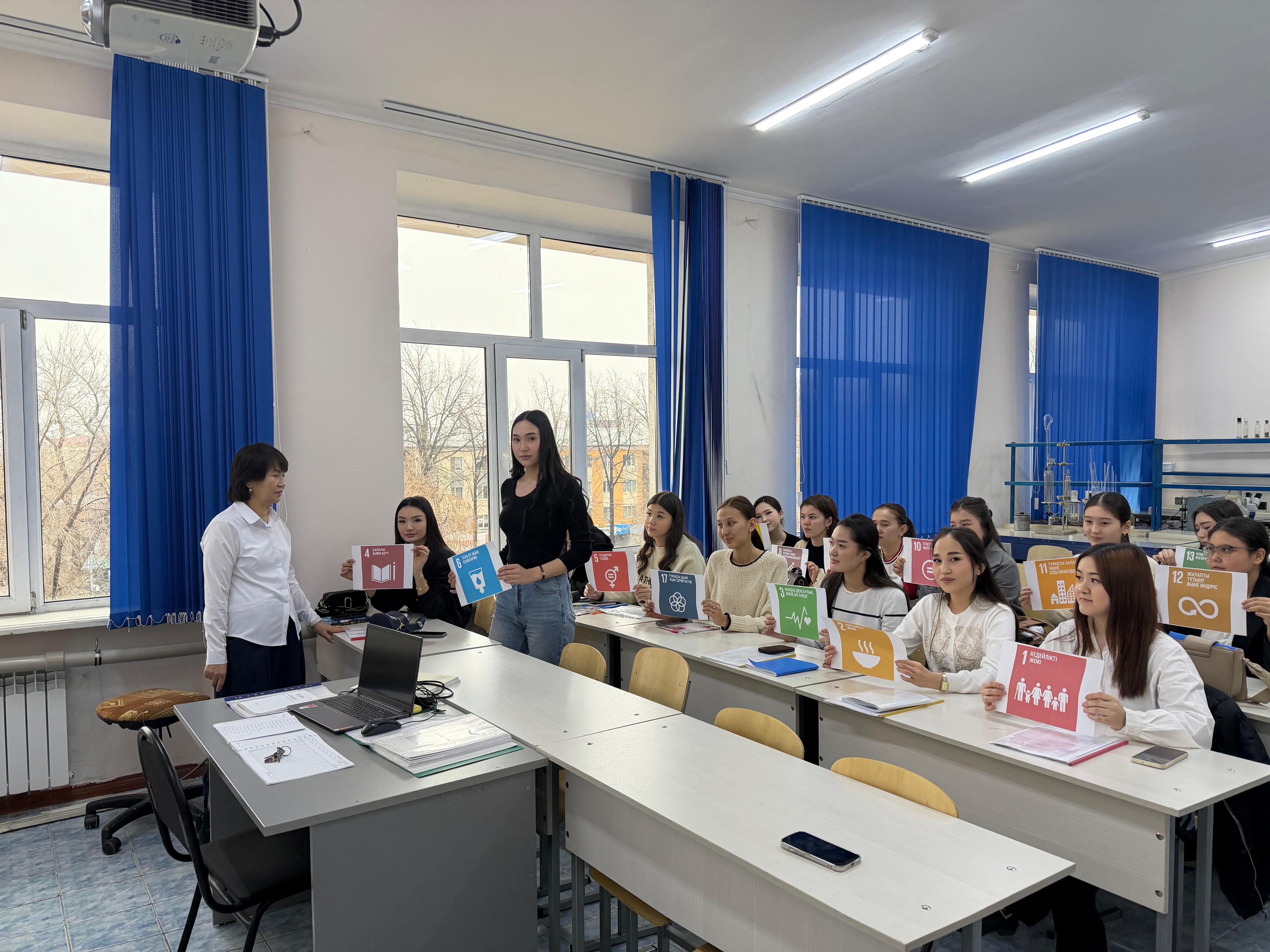 Экология кафедрасының аға оқытушысы Жорабаева Найля Каппаровна ХТ-24-4к4 тобы студенттерімен  Тұрақты даму мәселелеріне арналған  «Аймақтық тұрақты экологиялық даму»  атты тәрбиелік сағат өтіп, студенттермен Тұрақты дамудың 17 қағидаттарын талқылады.