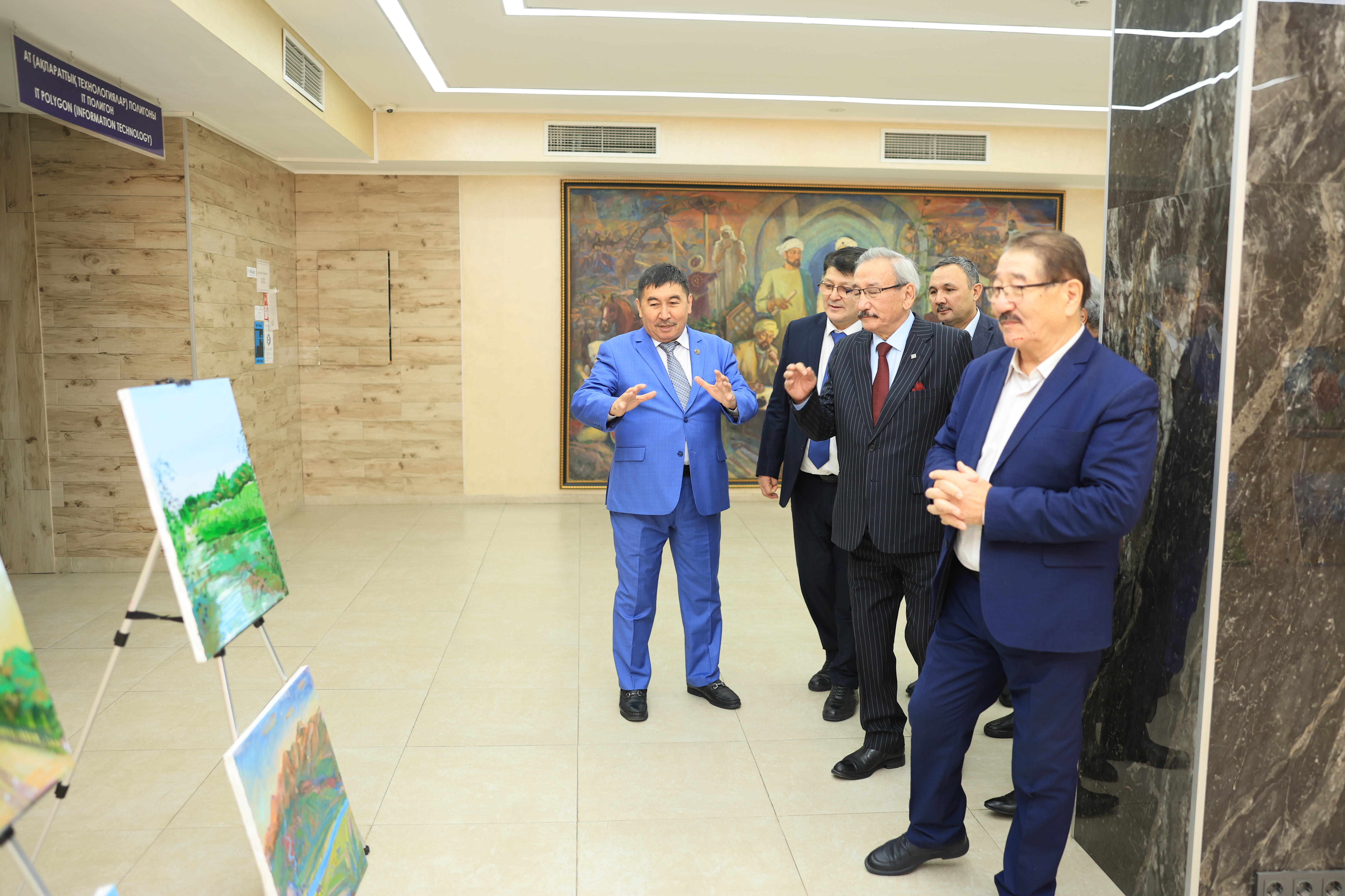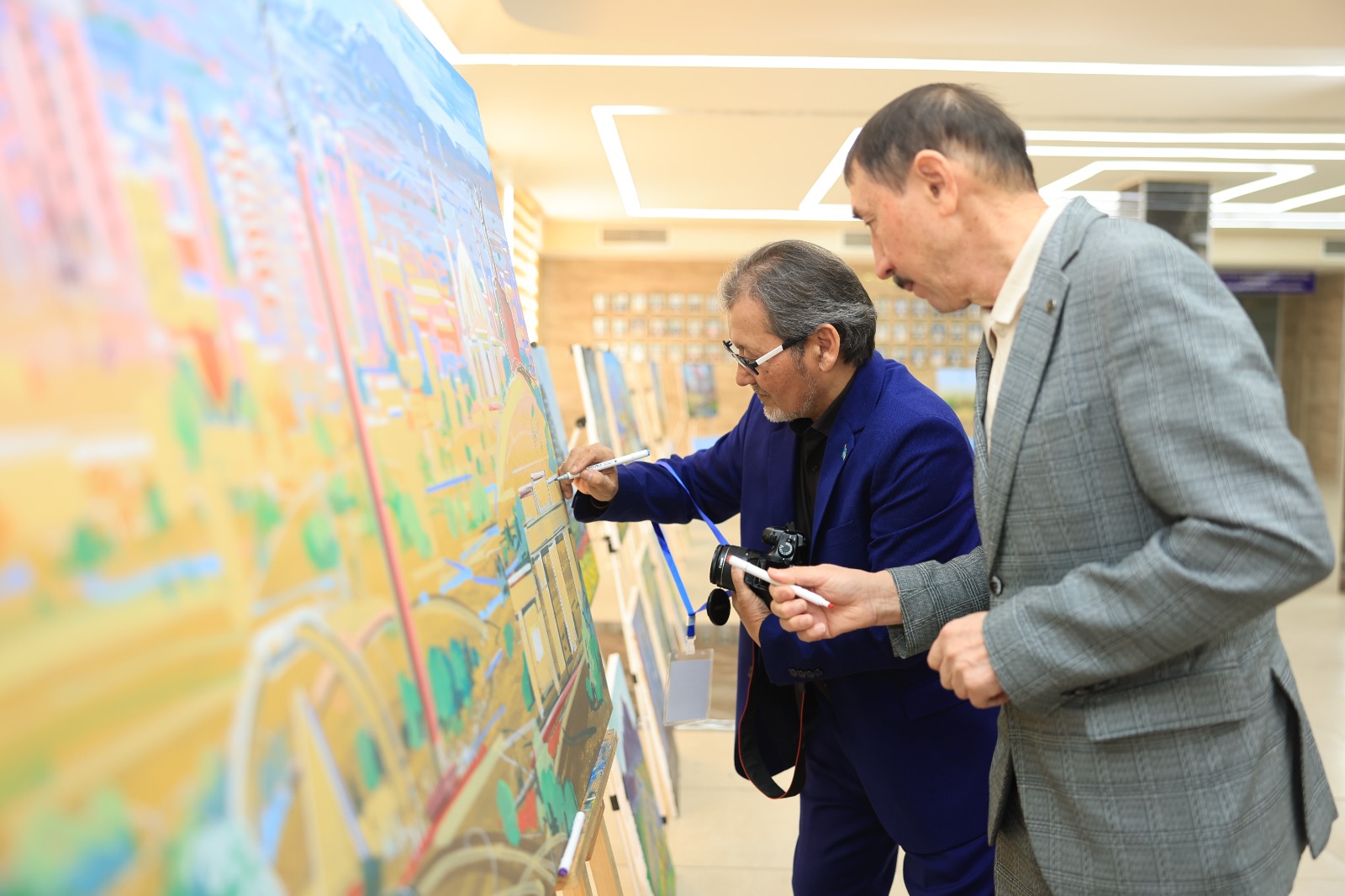Алдымен «60 күнде 60 туынды» атты челлендж аясында салынған қылқалам шеберлерінің сурет көрмесі өтті. Онда Медеубек Жұматайұлының және өңірімізге танымал суретшілердің түрлі бағыттағы еңбектері қойылды.