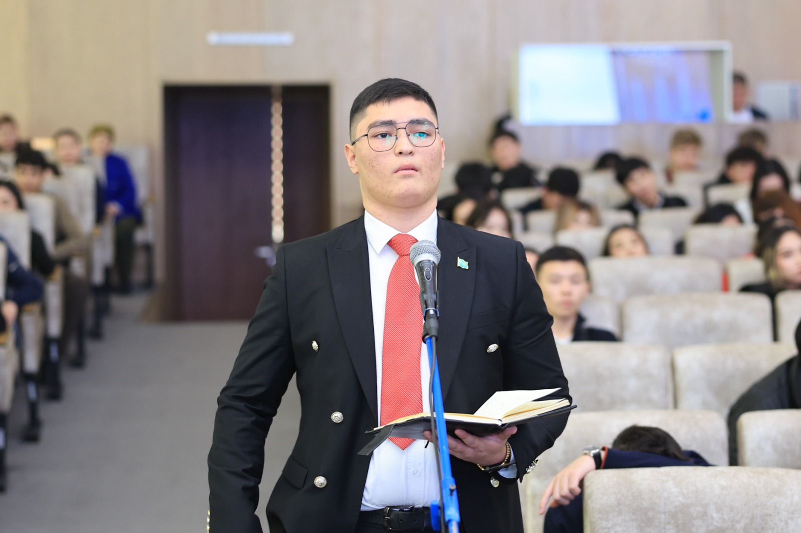 – Заң – мемлекеттің тірегі болса, тәртіп – сол заңның күнделікті өмірде нақты жүзеге асуы. Университет қабырғасында заң талаптарын сақтау, ішкі тәртіп ережелеріне бағыну әрбір қызметкер мен студенттің азаматтық әрі кәсіби жауапкершілігі. Білім беру ұйымы тек білім берумен шектелмей, болашақ маманның құқықтық мәдениетін, адалдығы мен жауапкершілігін қалыптастыратын орта болуы тиіс. Сондықтан заңды құрметтеу мен тәртіпті сақтау – оқу процесінің ажырамас бөлігі, – деді проректор.