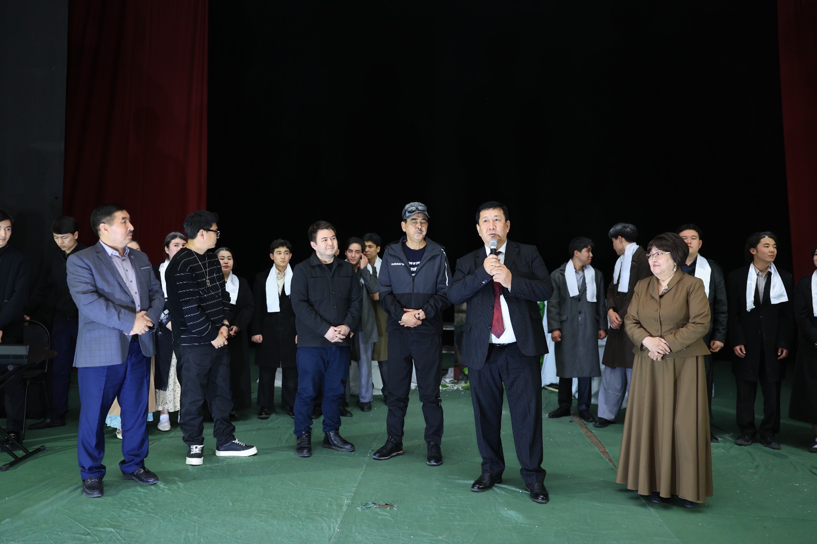 Факультет деканы және мерейтой иесі Садыбек Бейсенбаевтың құрметіне арналған апталық іс-шараның ұйымдастырушысы Медеубек Тәңірбергенов талай таланттың қалыптасуына жол ашқан ұстазды шын жүрекпен құттықтап, факультет сахнасында осындай тұлғаның мерейтойын атап өту үлкен мәртебе әрі зор құрмет екенін жеткізді.Өз кезегінде Садыбек Қалмаханұлы қойылымның ерекше әсер қалдырғанын айтып, дәл осы «Мәдениет және өнер факультетінің» түлегі екенін мақтанышпен жеткізді. Ол бұл сахнаның талай таланттың қанатын қатайтып, үлкен өмірге жол ашқан киелі мекен екенін атап өтіп, бүгінгі жастарға өнер жолында табандылық пен шабыт тіледі.