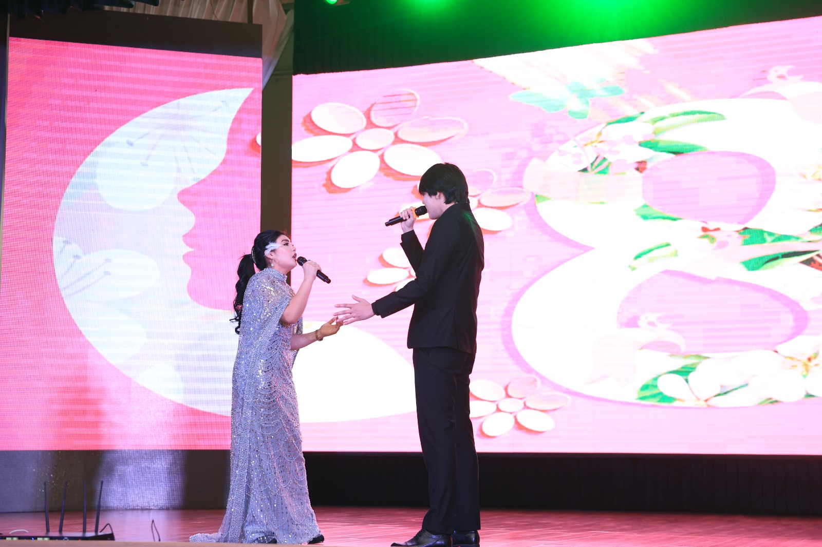 Одан кейін сахна төріне университеттің Басқарма төрағасы – ректоры Дархан Ахмед Заки көтеріліп, барша аруларды мерекемен шын жүректен құттықтады. Ол әйел қауымының қоғамдағы, білім мен ғылымдағы ерекше орнын атап өтіп, сұлулықтың символы саналатын аруларға толағай табыс, шығармашылық шабыт және отбасы амандығын тіледі.