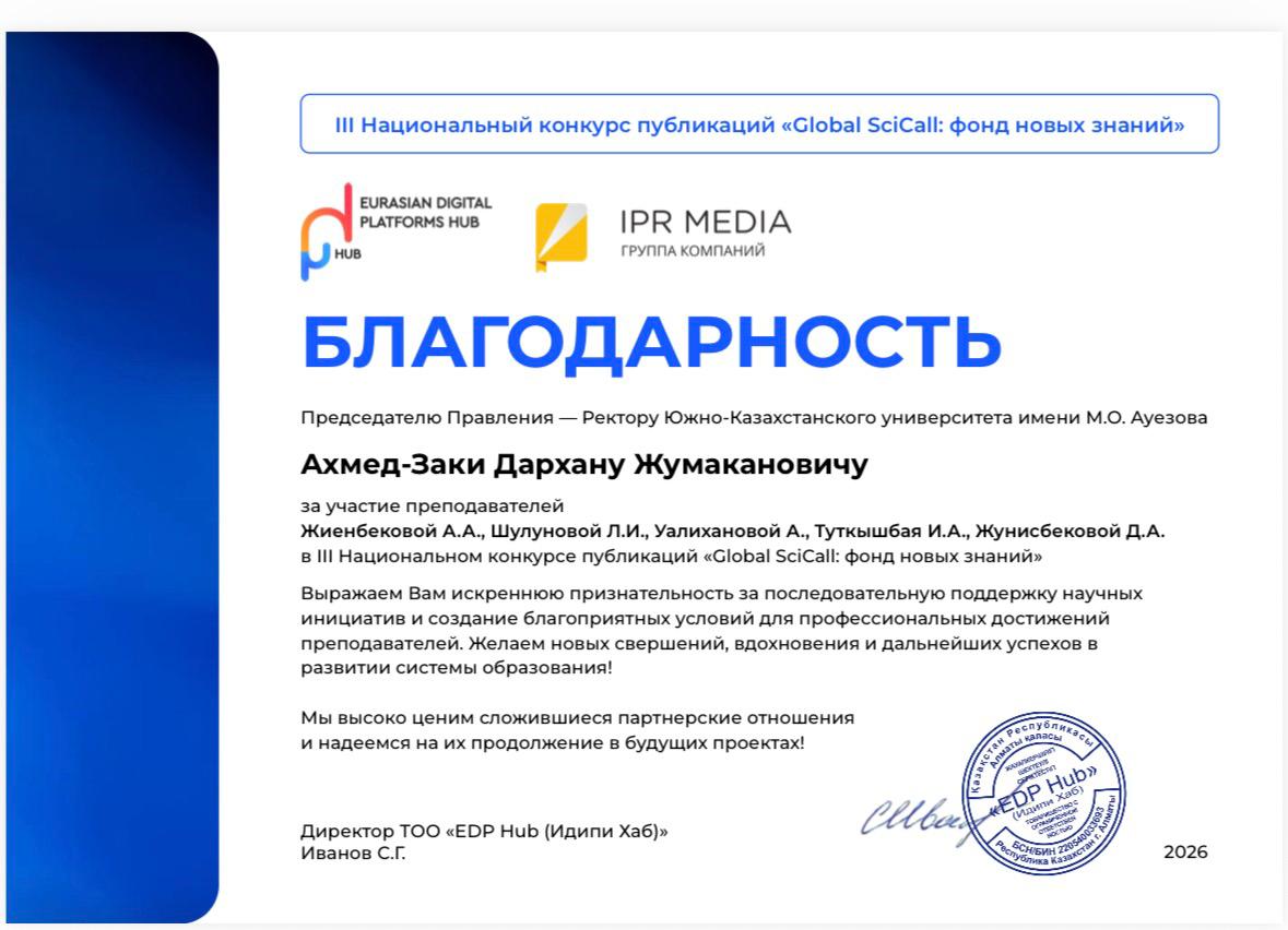 Әуезов ғалымының монографиясы «Global Scicall: Жаңа білім қоры» ІІІ Ұлттық байқауында үздік ден танылды
