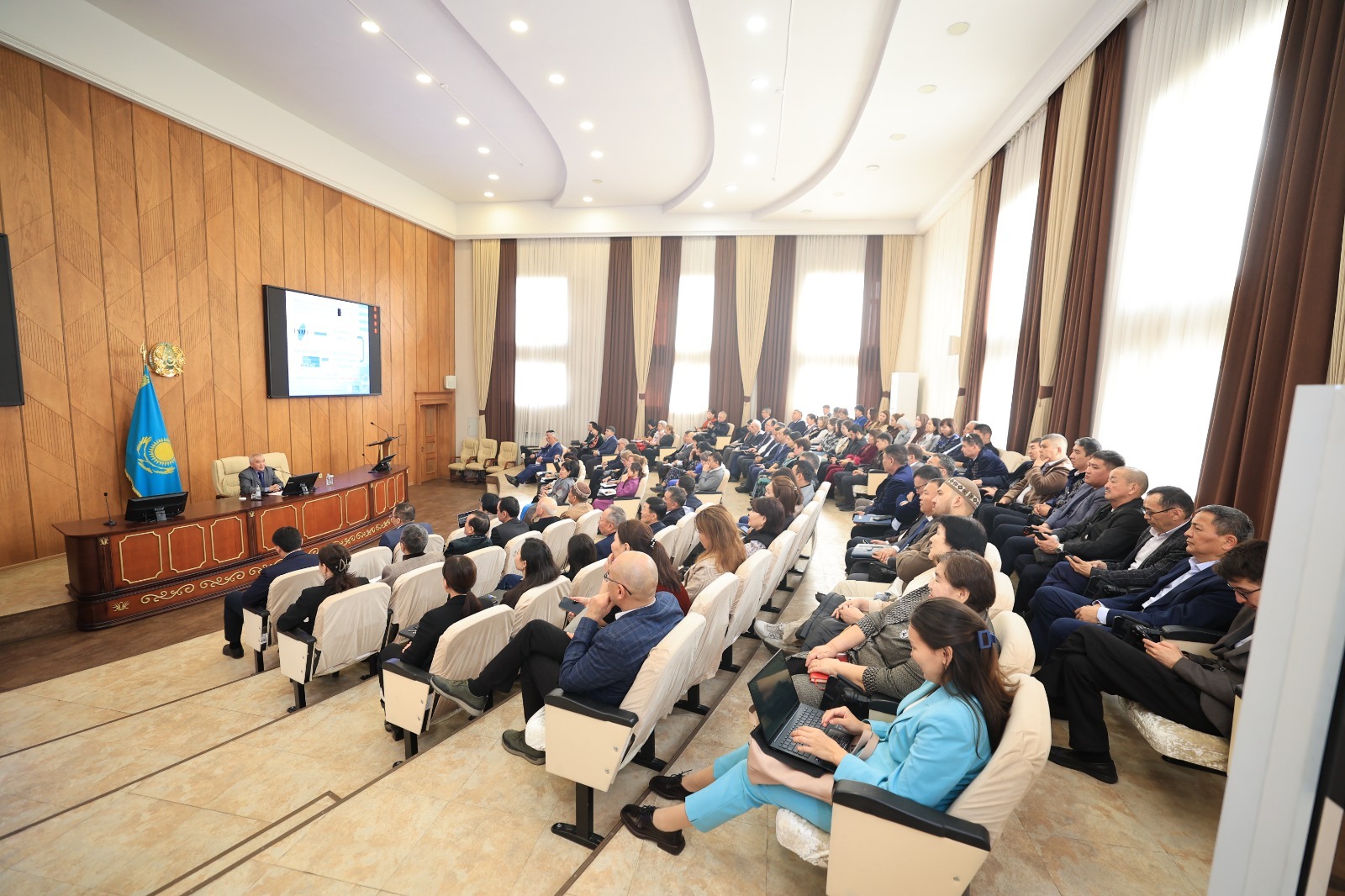 Алдымен Директорлар кеңесінің төрағасы, химия ғылымдарының докторы, профессор Мұхамбетқали Мырзабайұлы Бүркітбаев профессор-оқытушылар құрамына «ENAEE and the EUR-ACE® Labels: A European Policy Instrument for Quality and Mobility in Engineering Education» тақырыбында мазмұнды дәріс оқыды.