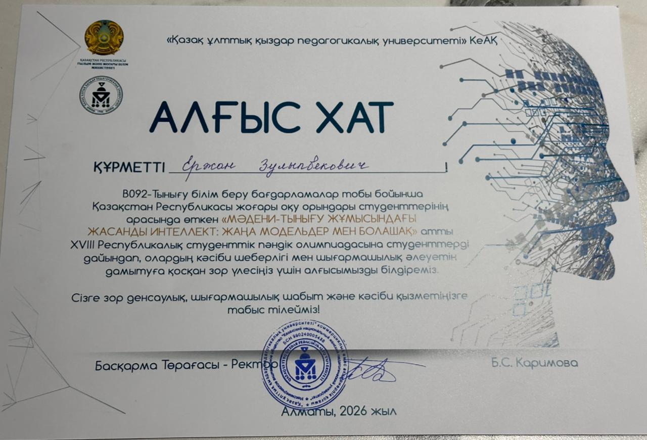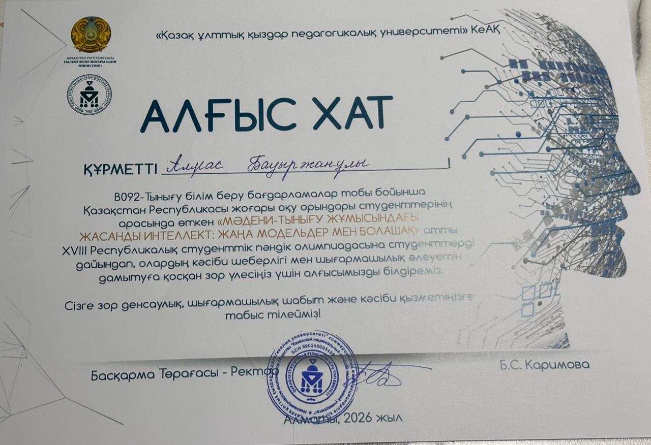 Алматы қаласында өткен Қазақ ұлттық қыздар университетінде «Мәдени тынығу жұмысы» мамандығы бойынша ұйымдастырылған Республикалық пәндік олимпиада өз мәресіне жетті.