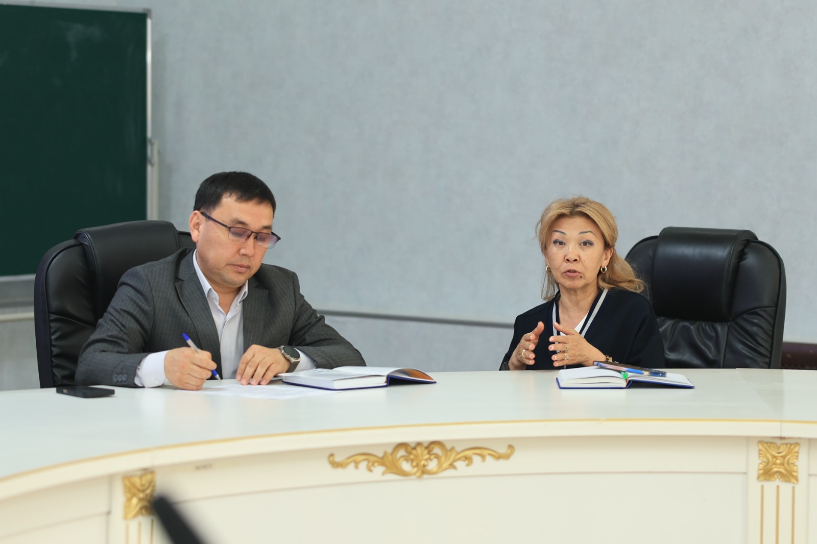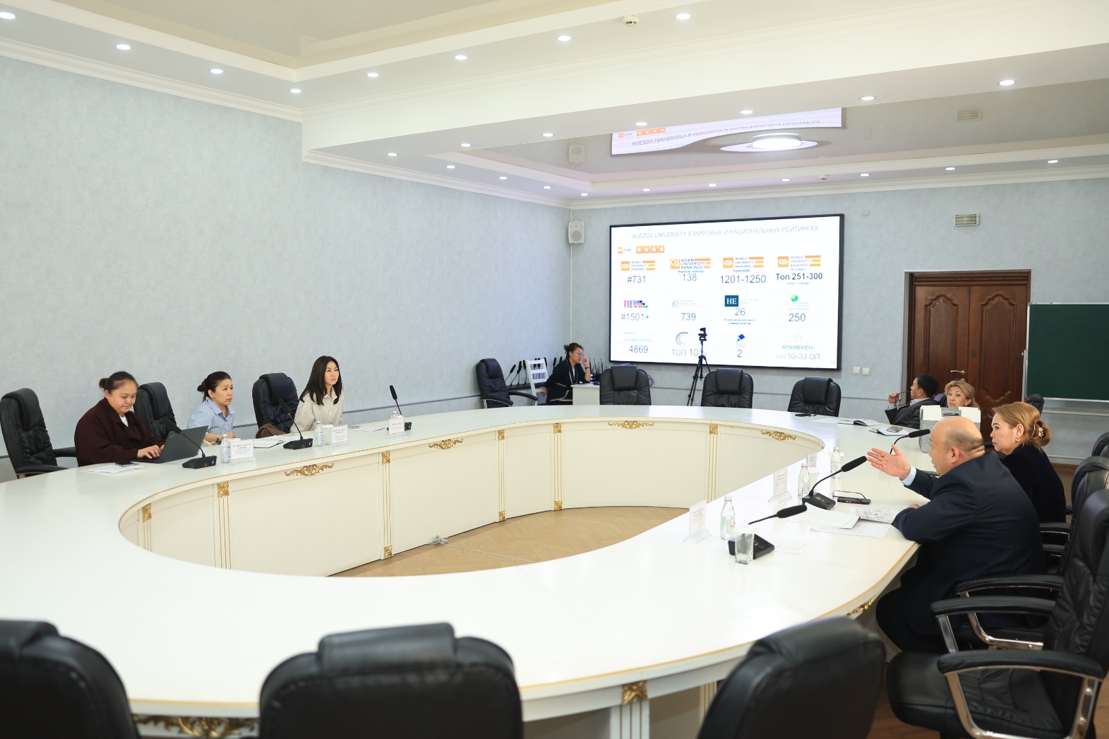 Кездесу барысында университеттің академиялық мәселелер жөніндегі проректоры Ернар Иманғалиев пен әлеуметтік және тәрбие жұмысы жөніндегі проректор Ғани Бесбаев қонақтарға оқу үдерісінің ұйымдастырылуы туралы жан-жақты ақпарат берді. Атап айтқанда, білім беру бағдарламаларының ерекшеліктері, студенттердің өндірістік тәжірибеден өту сапасы, түлектерді жұмыспен қамту мәселелері, сондай-ақ жастардың бос уақытын тиімді ұйымдастыру бағытындағы жұмыстар таныстырылды.
