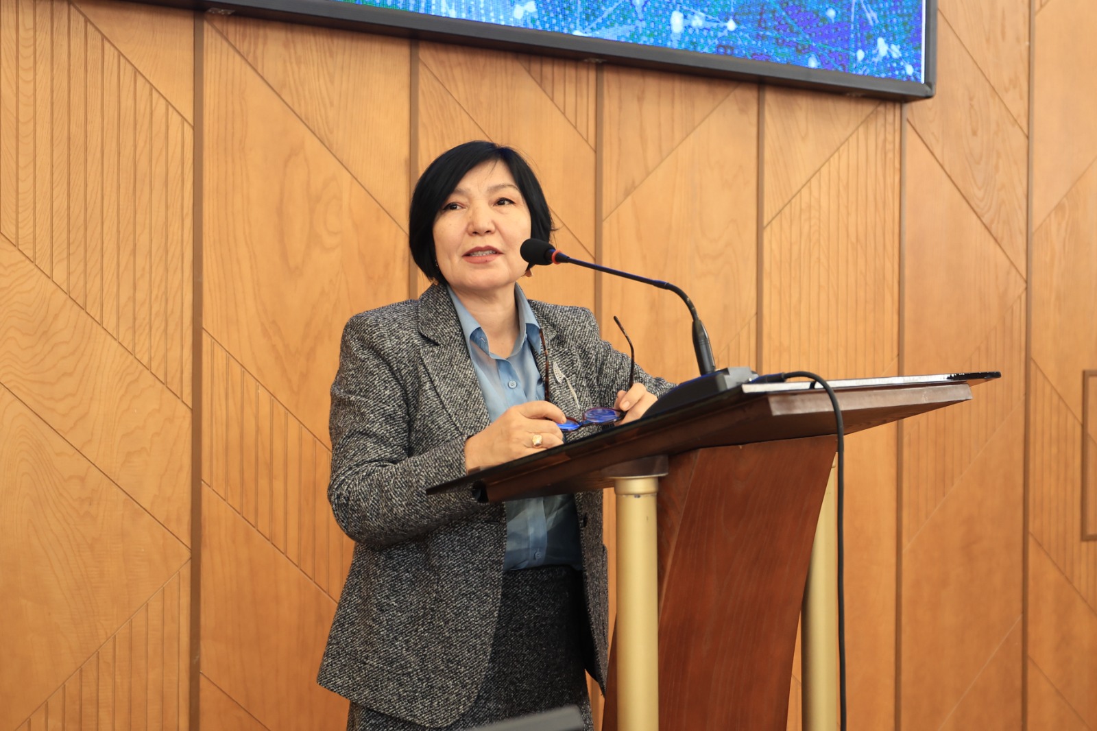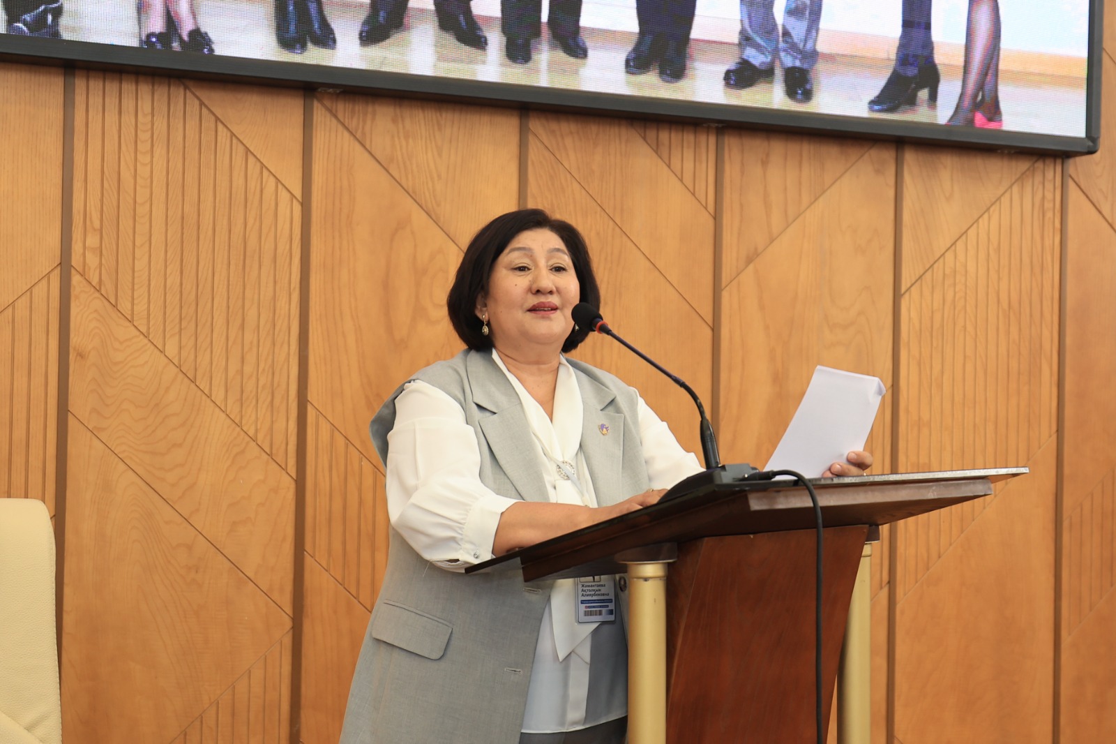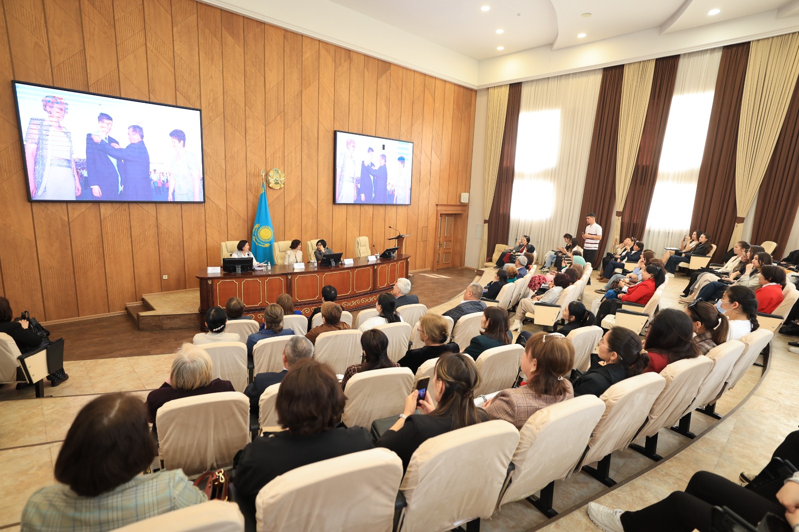 • Болатбек Мақұлбекұлы Тілеубердиев – «Қазақ қоғамындағы қазақ тілі мәдениетінің қазіргі мәселелері» тақырыбында баяндама жасап, қазіргі қоғамдағы тіл мәдениетінің өзекті мәселелеріне тоқталды.