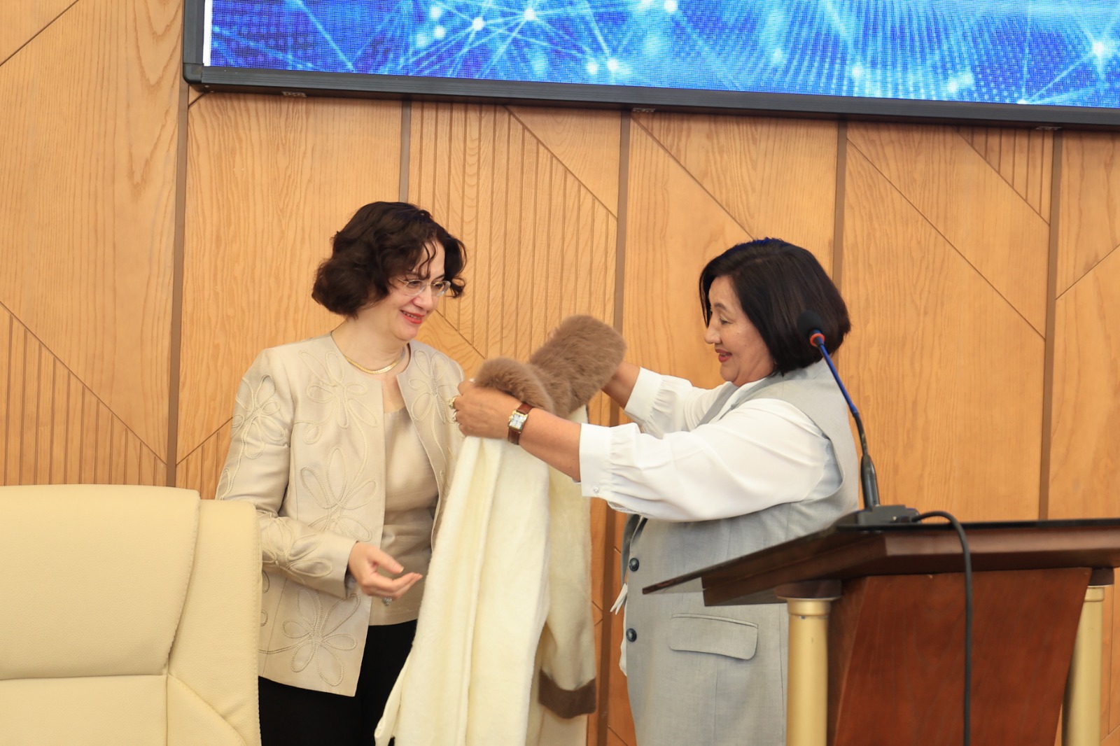 Іс-шараға мерейтой иесінің қызы Ольга Анатольевна арнайы қатысып, анасының еңбегі мен өмір жолына тоқталып, форум ұйымдастырушыларына алғысын білдірді.