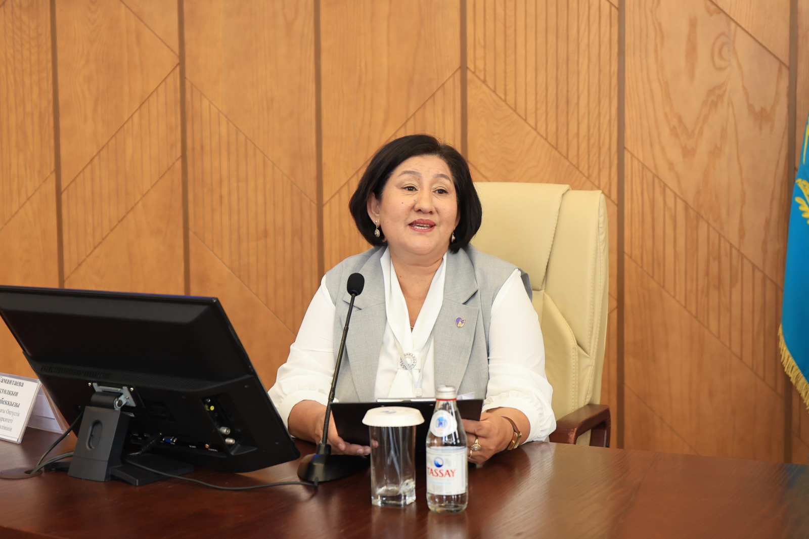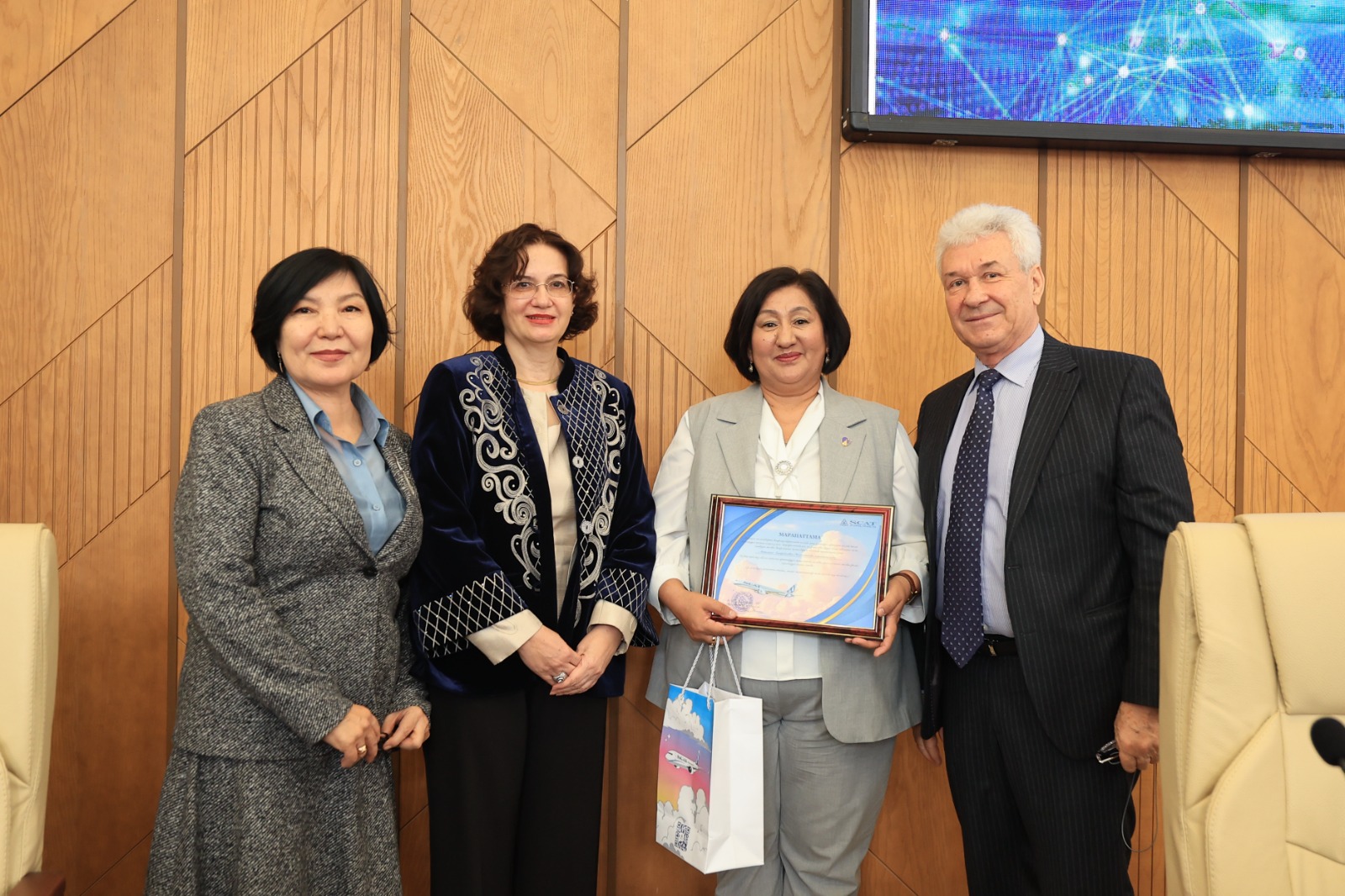 Құттықтау сөз сөйлеген университеттің халықаралық ынтымақтастық жөніндегі проректор Гүлнара Карбозова қатысушыларға ізгі тілектерін жеткізіп, Басқарма төрағасы-ректор Дархан Жұмақанұлының құттықтауын оқып берді. Ол өз сөзінде университетте көптілді білім беруді дамыту мен халықаралық ғылыми байланыстарды нығайту бағытында атқарылып жатқан жұмыстарға тоқталды.