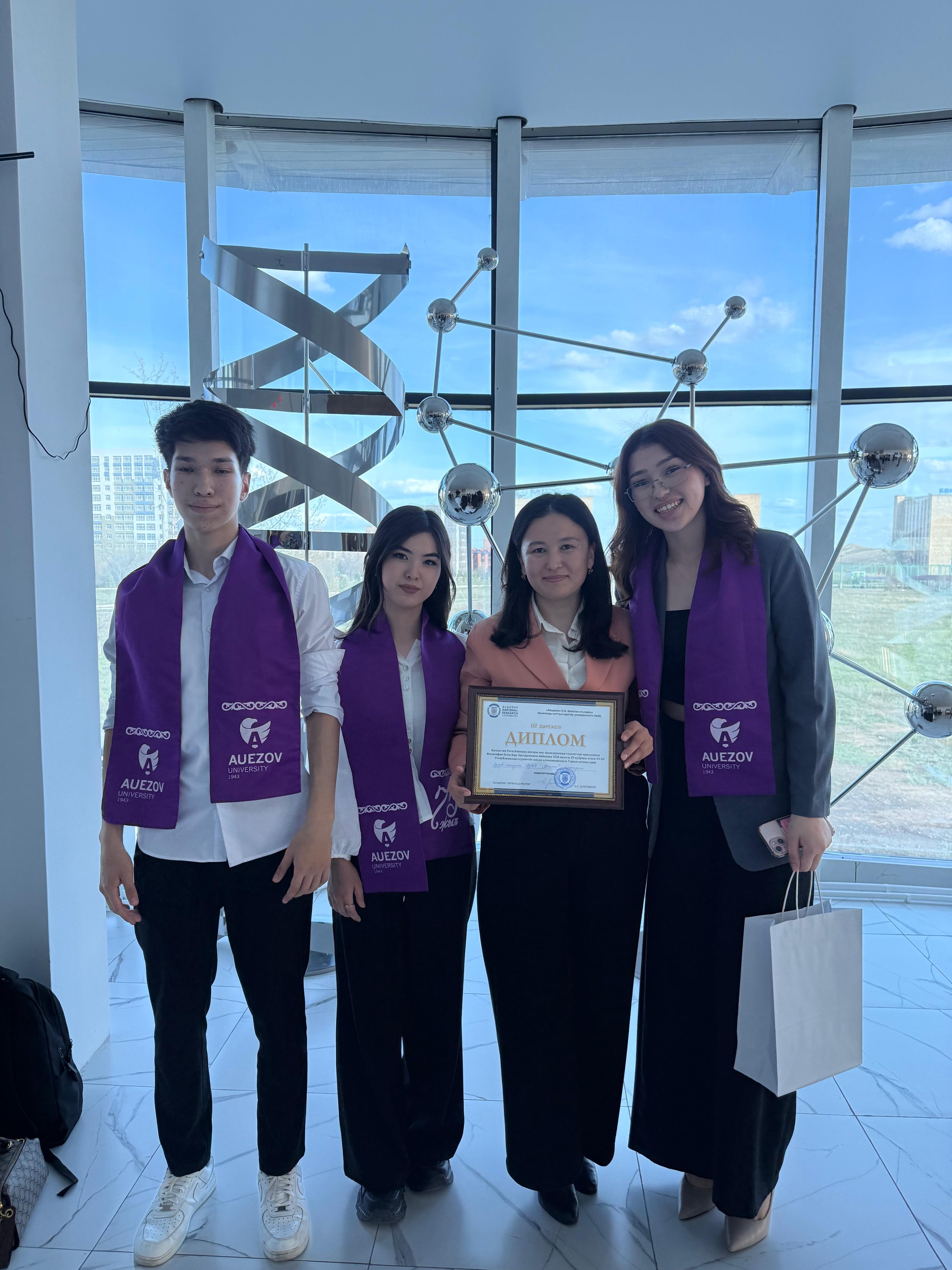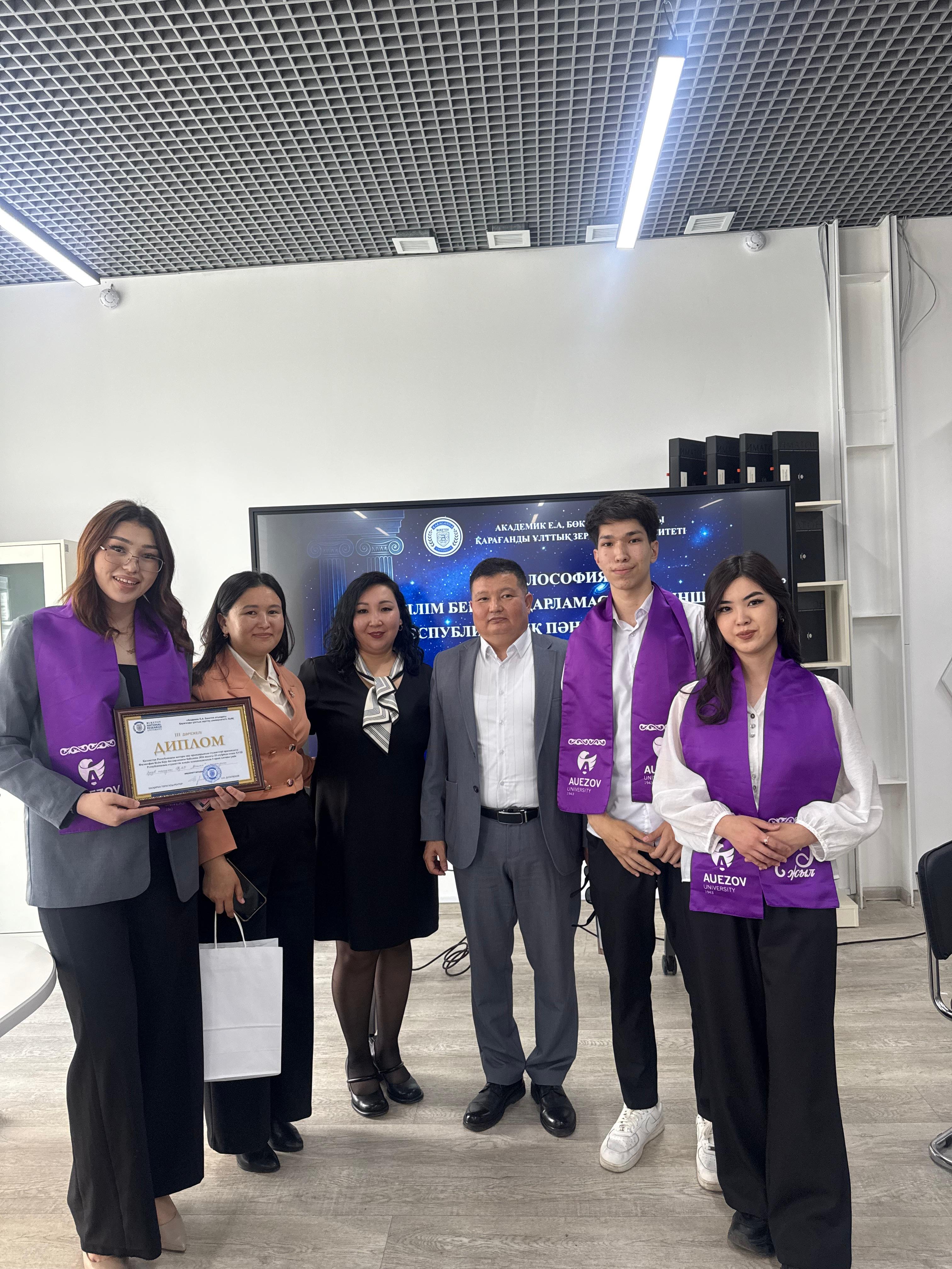 2026 жылғы 25 сәуірде Академик Е.А. Бөкетов атындағы Қарағанды ұлттық зерттеу университетінде “6B02201 – Философия” білім беру бағдарламасы бойынша XVIII Республикалық пәндік олимпиада өткізілді. Олимпиада қорытындысы бойынша топтық есепте М.Әуезов атындағы ОҚУ «Когито» командасы IIІ жүлделі орынды иеленді.