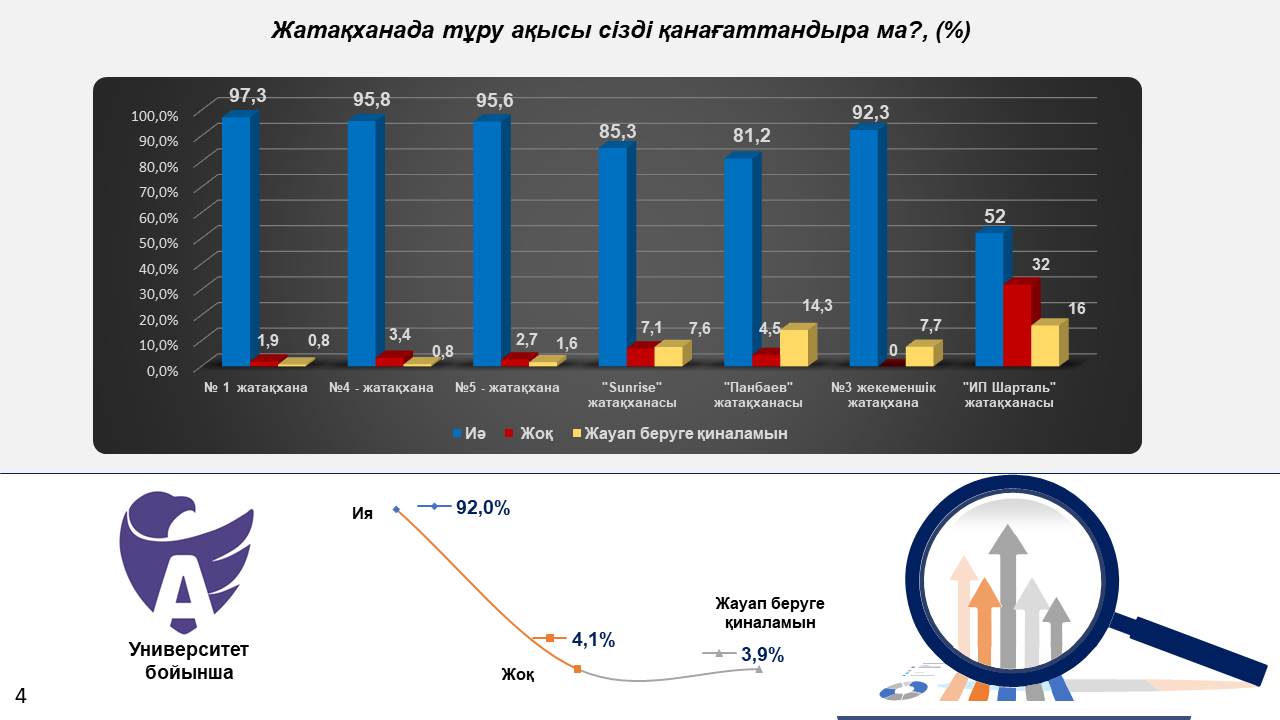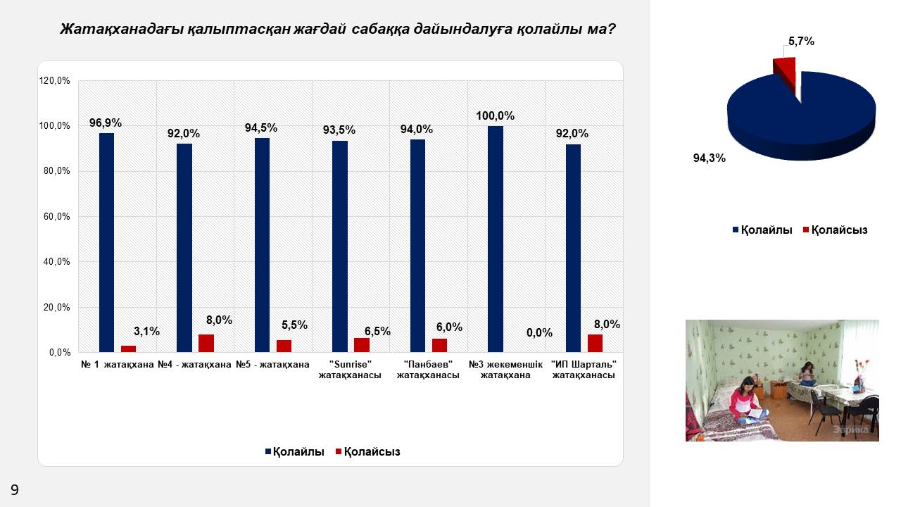 - Жатақханадағы студенттердің тұрмыс жағдайына қанағаттануын бағалау;