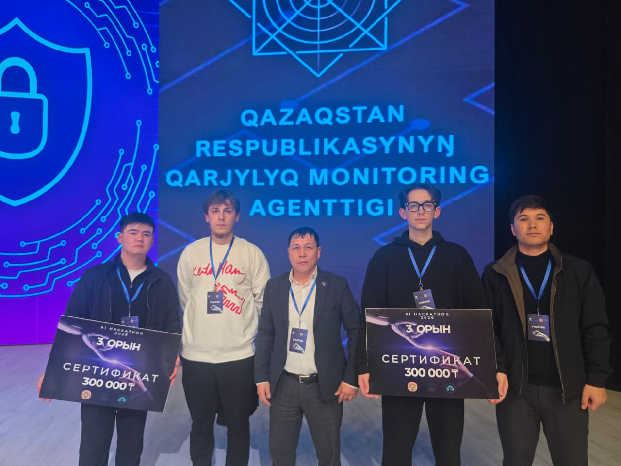 В городе Туркестан департаментом экономических расследований и международным казахско-турецким университетом им. Х. А. Ясави 25-26 февраля 2026 года в межрегиональном хакатоне «Финансовая безопасность в эпоху цифровизации и искусственного интеллекта» зарегистрировано 142 команды, около 400 участников. Участники представили проекты по пяти основным направлениям. Первое направление» выявление нелегальных продавцов на платформе AI Digital Trace – Telegram «Хайтбаев Б. П. ИП-22-3к3, Казыбековна с. и Нариманов Б. С. студенты ИП-23-3к3 3 место 300 тыс. тенге, третье направление «AI-анализ государственных закупок» Студенты группы С. И. Бондарев, К. Г. Айрапетянц ИП-22-3р были награждены 3-м местом и премией в 300 тыс. тенге.