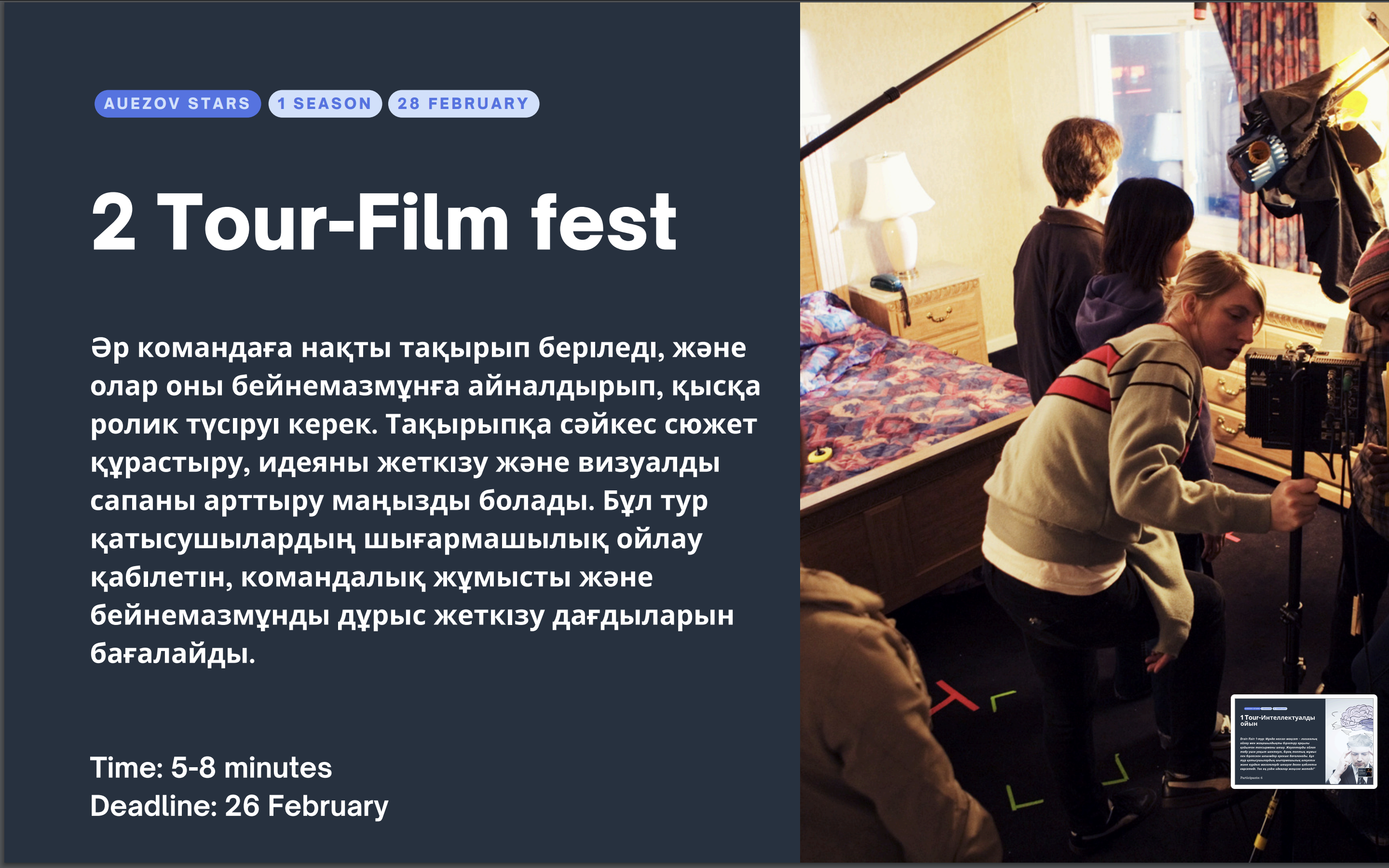 Auezov Stars жобасы Артқа Алға Twitter Twitter Facebook Whatsapp share with Whatsapp Telegram share with Telegram Егер Сіз қатені байқасаңыз, мәтін бөлігін таңдап, Ctrl+Enter пернелерін басыңыз