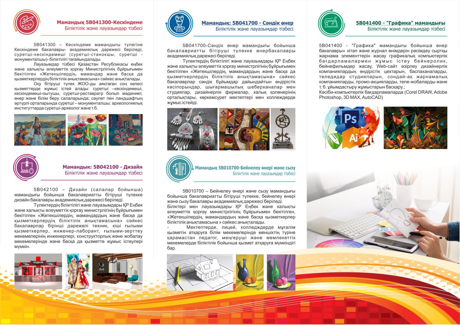 5В041400–«Графика» мамандығы және 6B02150 -БББ бойынша: А.Асқаров ат. Шымкент мемлекеттік Дендросаябағы, «Сақ дала» киностудиясы