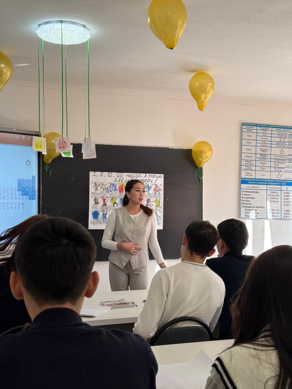 Преподаватель предмета «Химия» Центра довузовской подготовки Жумадиллаева Умия Нурмахан қизи провела открытый урок для группы «Химия–Биология» на тему «Общая характеристика элементов подгруппы А основных групп I, II, VI, VII.». Каждый слушатель проявил активность и продемонстрировал остроту мысли. Открытый урок был проведён на высоком уровне.