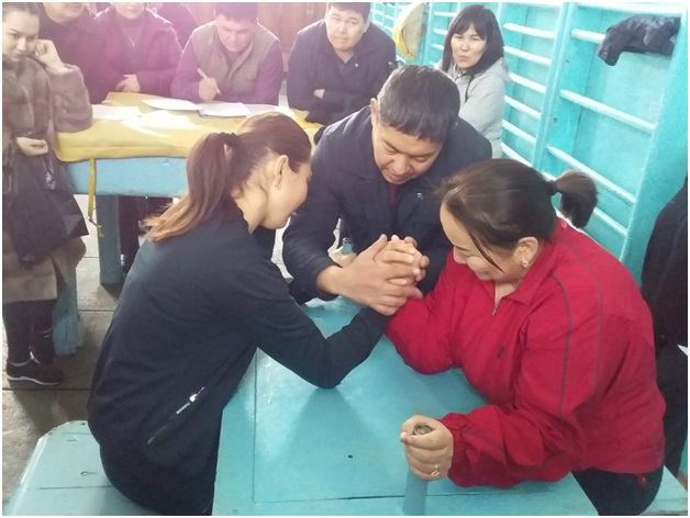 Arm wrestling competitions among faculty and staff SKSU them. M. Auezova