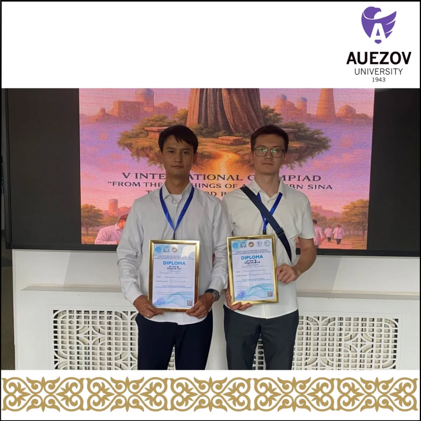 Students of the Department of Biotechnology, the Higher School of Chemical Engineering and Biotechnology named after M. Auezov took part in the V International Olympiad "from the teachings of Abu Ali ibn Sina to the Third modernization", which was held on May 21-22, 2025 on the basis of the Bukhara State Institute named after Abu Ali ibn Sina in Bukhara. According to the results of the competition, our students are on their way to science.: