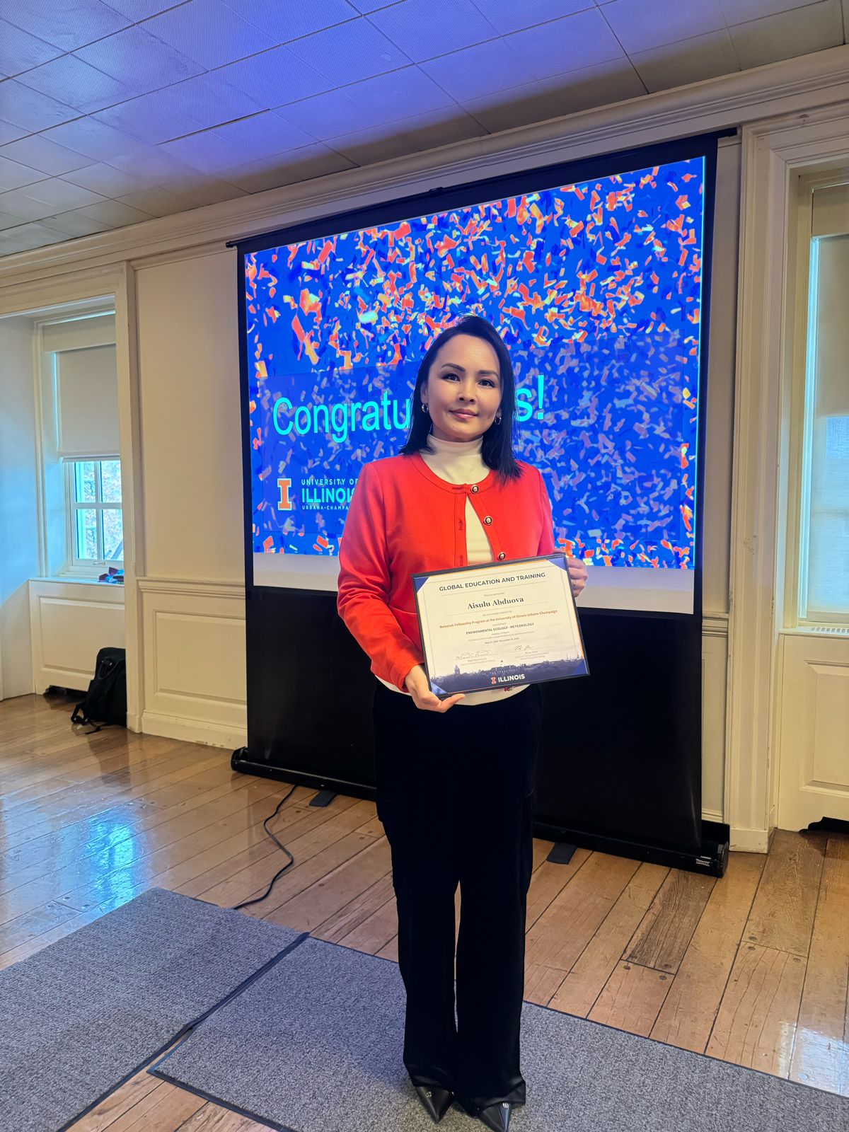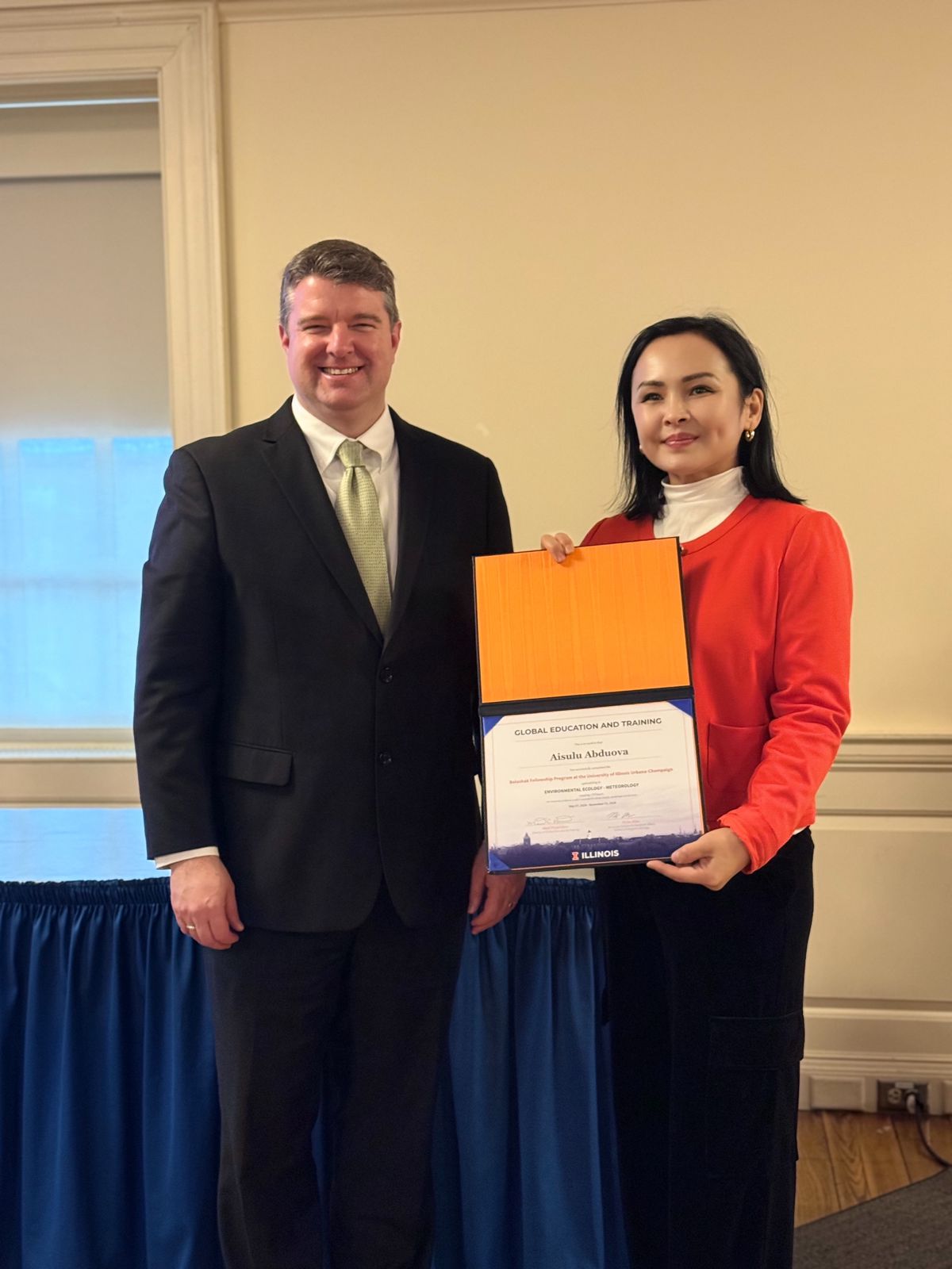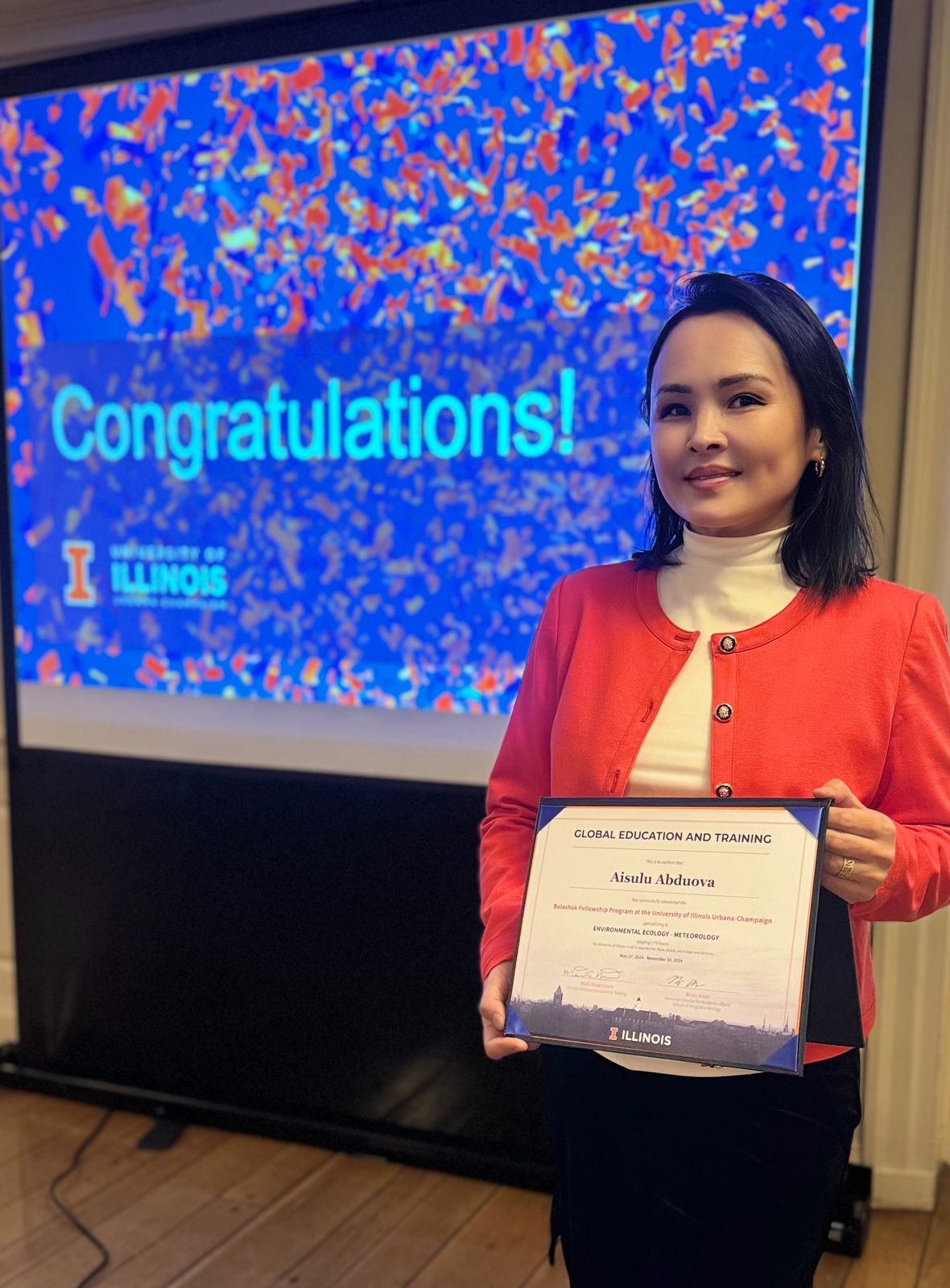 Доцент кафедры “Экология” кандидат технических наук Абдуова А.А. в рамках программы международной программы Болашак “500 ученых” прошла научную стажировку по направлению “Окружающая среда и метеорология” в Иллинойском Университете Урбана Шампейна(штат Иллинойс,Соединенные штаты Америки)