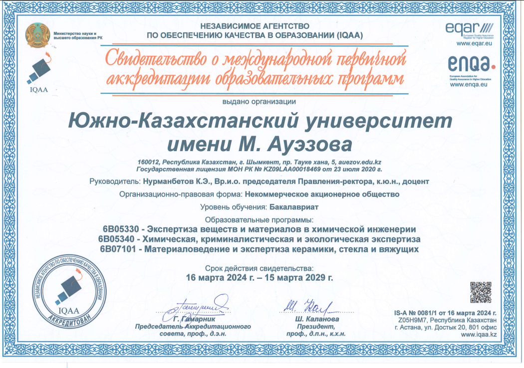 6В07101 - Материаловедение и экспертиза керамики, стекла и вяжущих