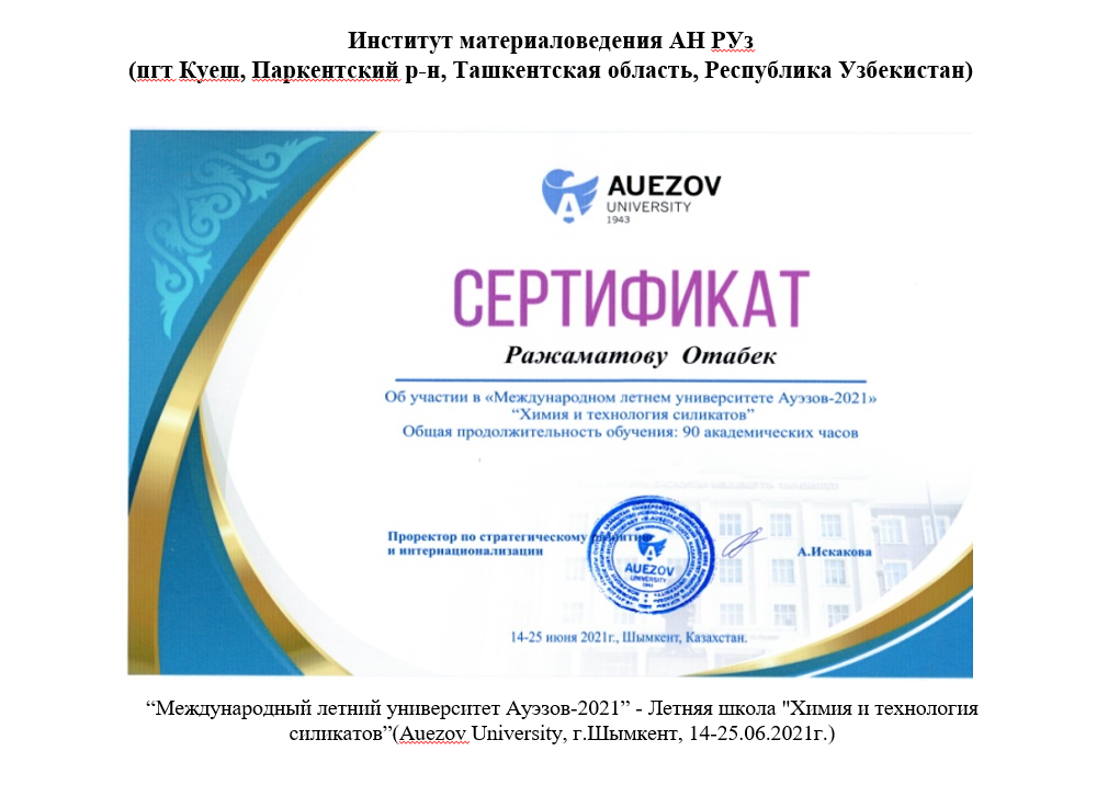Институт материаловедения Академии наук Республики Узбекистан (Республика Узбекистан, Ташкентская область, Паркентский р-н, пгт Куеш)
