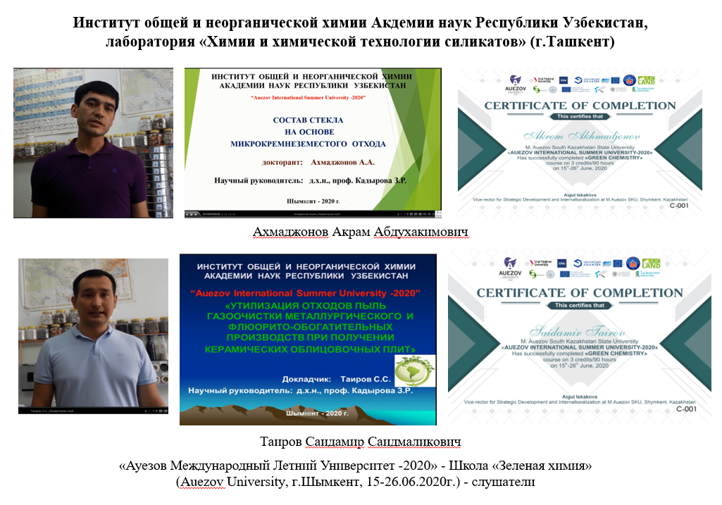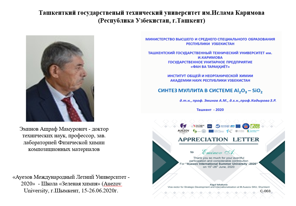 Институт общей и неорганической химии Акдемии наук Республики Узбекистан (Республика Узбекистан, г.Ташкент)